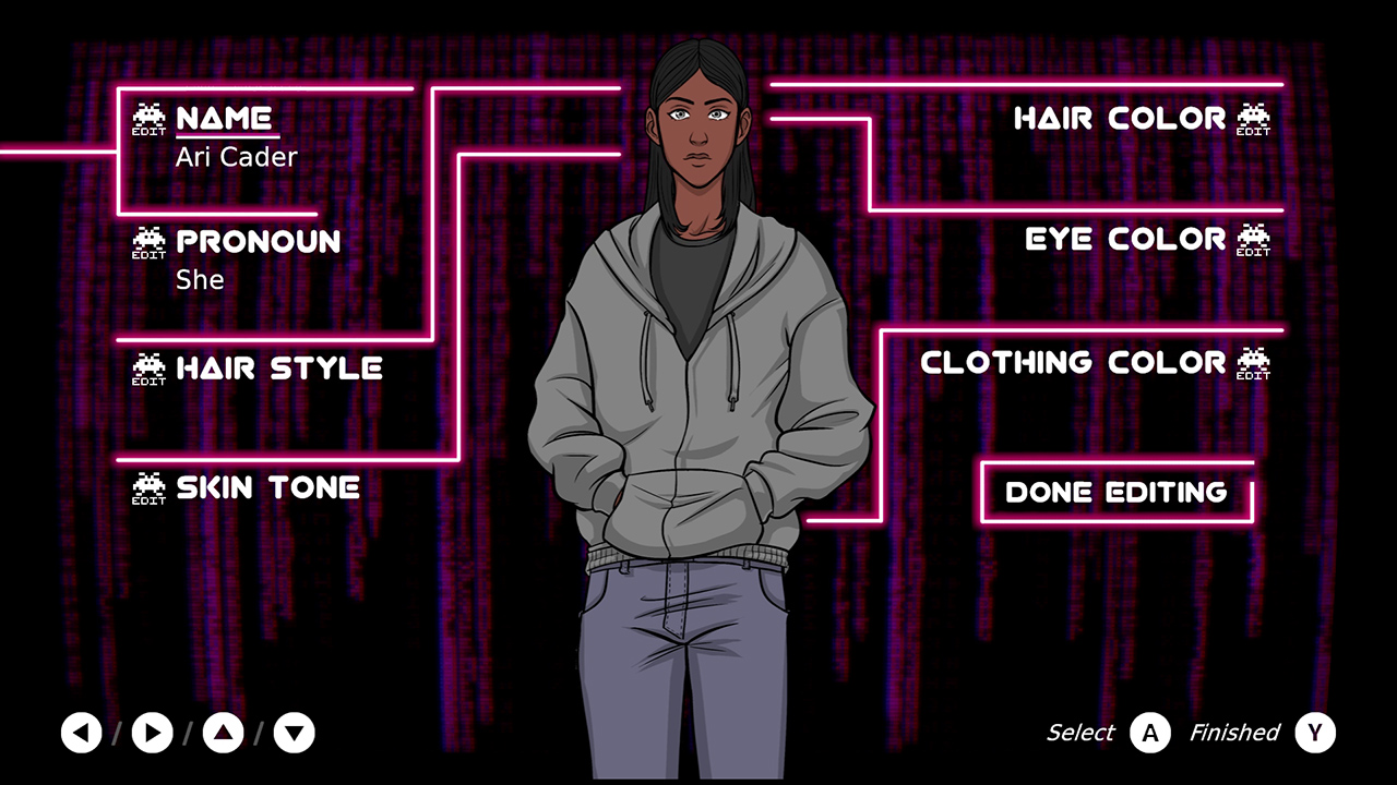A játékmenet alapvetően párbeszédekből és döntésekből áll, de ami igazán számít, az az egész ritmusa. Nincs kapkodás, nincs stressz, az egésznek van egy nyugodt, délutáni arcade-zsongás hangulata. A karakteralkotás meglepően rugalmas: nemcsak kinézetet, hanem névmást is választhatok, ami ebben a műfajban még mindig nem magától értetődő. Ruhákban és apró kiegészítőkben elbírtam volna többet, de ez inkább hiányérzet, mint valódi probléma.