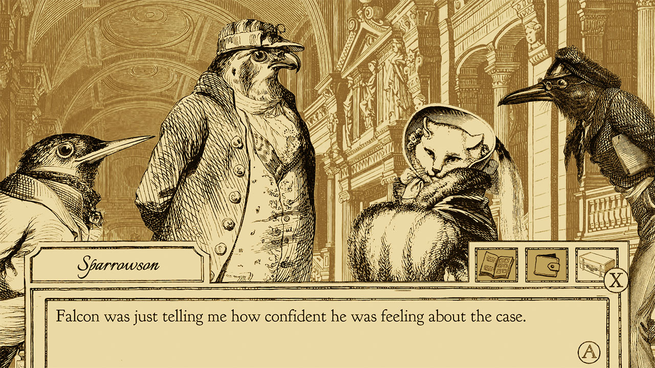 Ami igazán megfogott, az a vizuális világ. A játék teljes képi anyaga 19. századi francia karikatúrákból építkezik, J. J. Grandville rajzaiból, és ez nem csak egy jópofa trükk. Él, mozog, karaktere van. Minden szereplő úgy néz ki, mintha egy múzeumi albumból lépett volna ki, és ettől az egész atmoszféra olyan sűrű, hogy szinte érzem a poros könyvtárszagot a képernyőn keresztül.