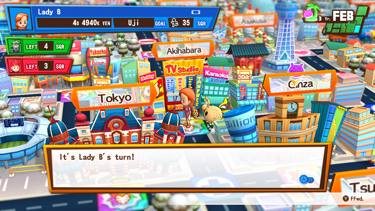 A játék maga egy klasszikus társasjátékra épít, ahol te és barátaid, vagy mesterséges intelligenciával kiegészítve, a japán térképen vásárolgattok, célokat hajtotok végre, és próbáljátok legyűrni a szerencse szeszélyeit.
