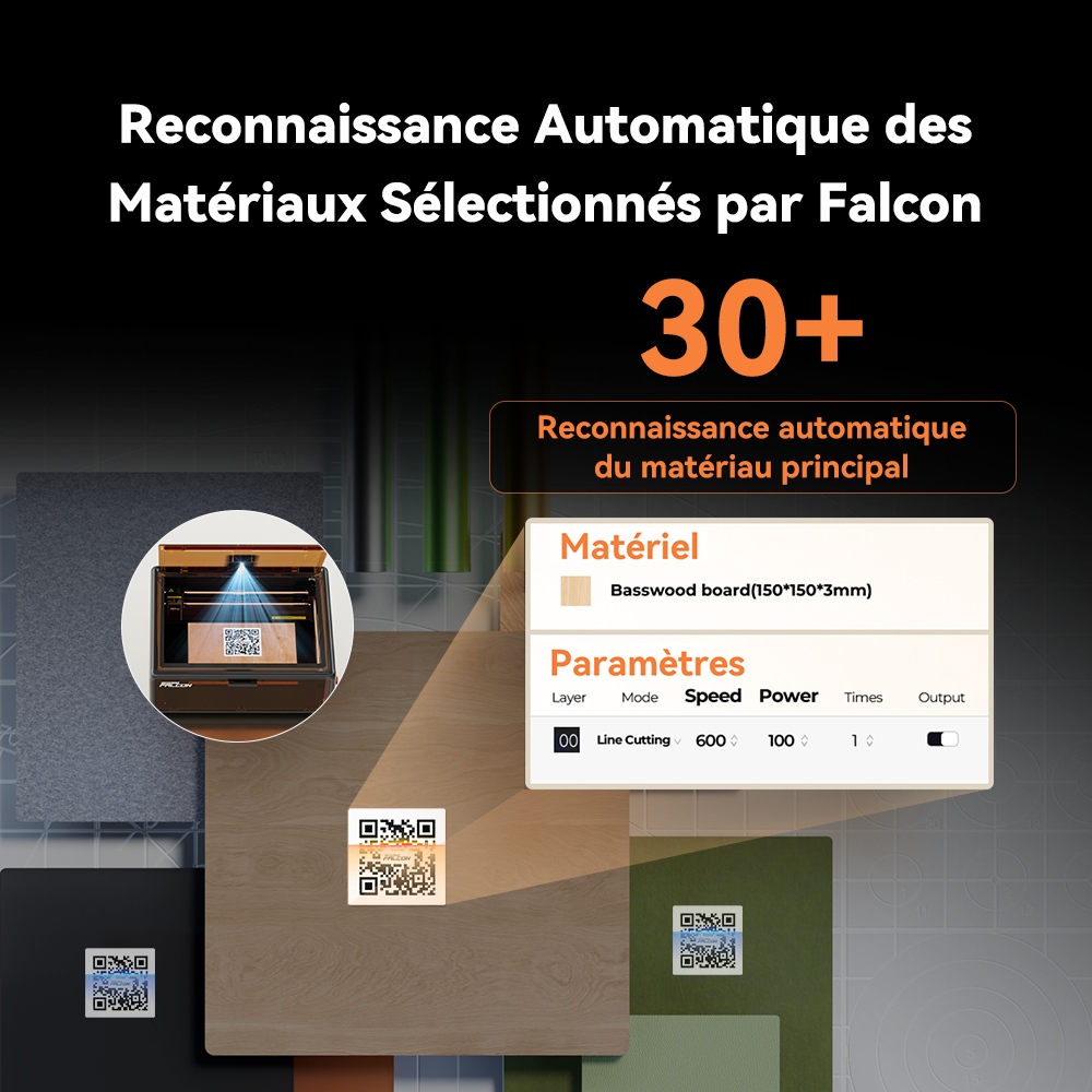 A Falcon A1 egyik legnagyobb húzása az intelligens anyagfelismerés, ami elsőre marketingbullshitnek hangzik, de meglepően jól működik. A QR-kódos rendszer konkrétan leveszi a válladról azt a nyűgöt, amit mindenki ismer, aki valaha is próbált gravírozni: a végtelen tesztelést.