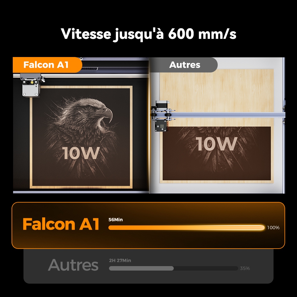 Creality Falcon A1 10W lézergravírozó, FDA 1. osztály, 600mm/s, 0,06-0,08mm pont, anyagérzékelő, 305×381mm
