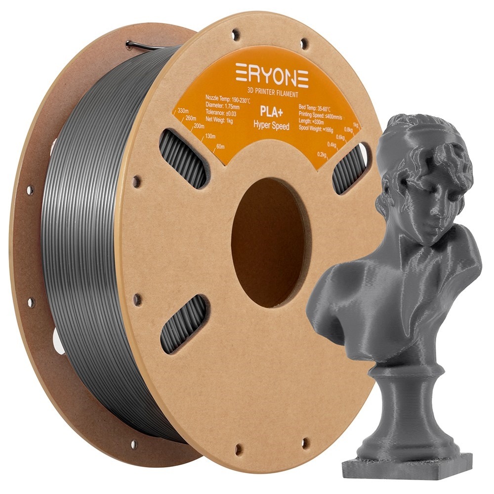 A legtöbb „high speed” filamentnél az első komolyabb print után rögtön kiderül, hogy a dobozra írt nagy számok inkább marketingesek voltak, mint mérnökiek, az ERYONE High Speed PLA+ viszont pont azért érdekes, mert nem omlik össze attól, ha tényleg munkára fogod. A megadott specifikációk szerint ez egy 1,75 mm-es, ±0,03 mm tűrésű, 190–230 °C-os fúvóka-hőmérséklettel és 35–60 °C-os asztallal használható, nagy sebességre optimalizált PLA+, amelyet a gyártó és a kereskedői listák egyaránt 30–400 mm/s közti tartományra lőnek be. A hivatalos ERYONE-oldalak ráadásul külön hangsúlyozzák, hogy a High-Speed PLA+ sorozat a normál PLA-nál jobb folyékonyságra, nagyobb szívósságra és gyorsabb nyomtatási ritmusra van hangolva, miközben a nagyobb webshopos csomagok tényleg léteznek 10 kg-os, többtekercses formában is. Ugyanakkor a különböző bolti adatlapok között van némi zavar a csomagtartalom szintjén: a 10 kg-os gyűjtőcsomagok valós kereskedelmi formában több darab 1 kg-os spoolt jelentenek, miközben egyes rövidebb specifikációs sorok ezt félreérthetően rövidítik. Magyarul: maga a termékkoncepció valós, de a kereskedői adatlapokat nem árt fejben helyretenni.