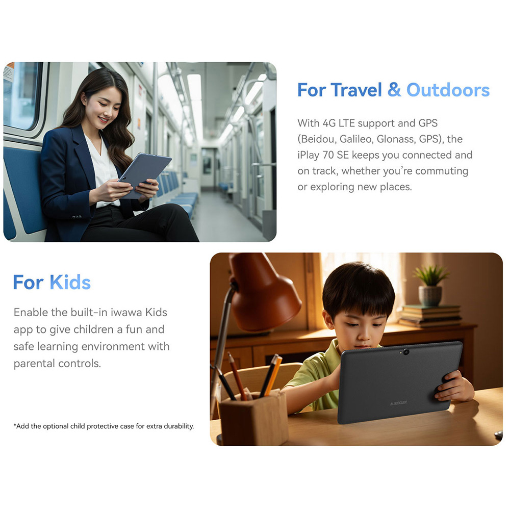 Az ALLDOCUBE iPlay 70 SE első ránézésre nem akar többnek látszani annál, ami: egy klasszikus gyerektablet, színes tokkal, visszafogott hardverrel, és egy olyan specifikációval, ami nem a benchmarkokban, hanem a nappaliban akar bizonyítani. És őszintén, ez így van rendjén.