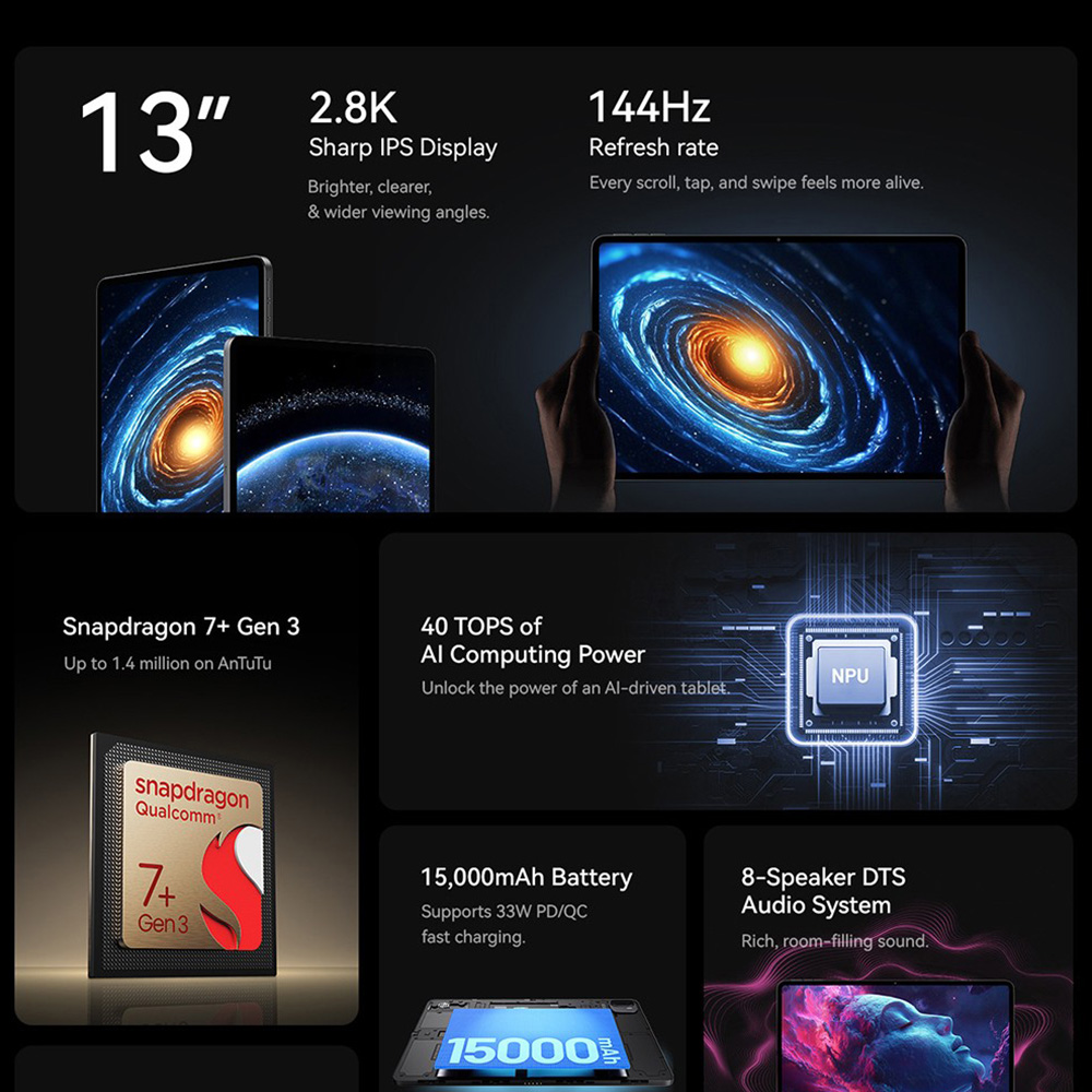 - nagy és kiváló 144Hz kijelző, erős teljesítmény, billentyűzet + ceruza kombináció, kiváló hangzás, hatalmas akkumulátor, sokoldalú használat.