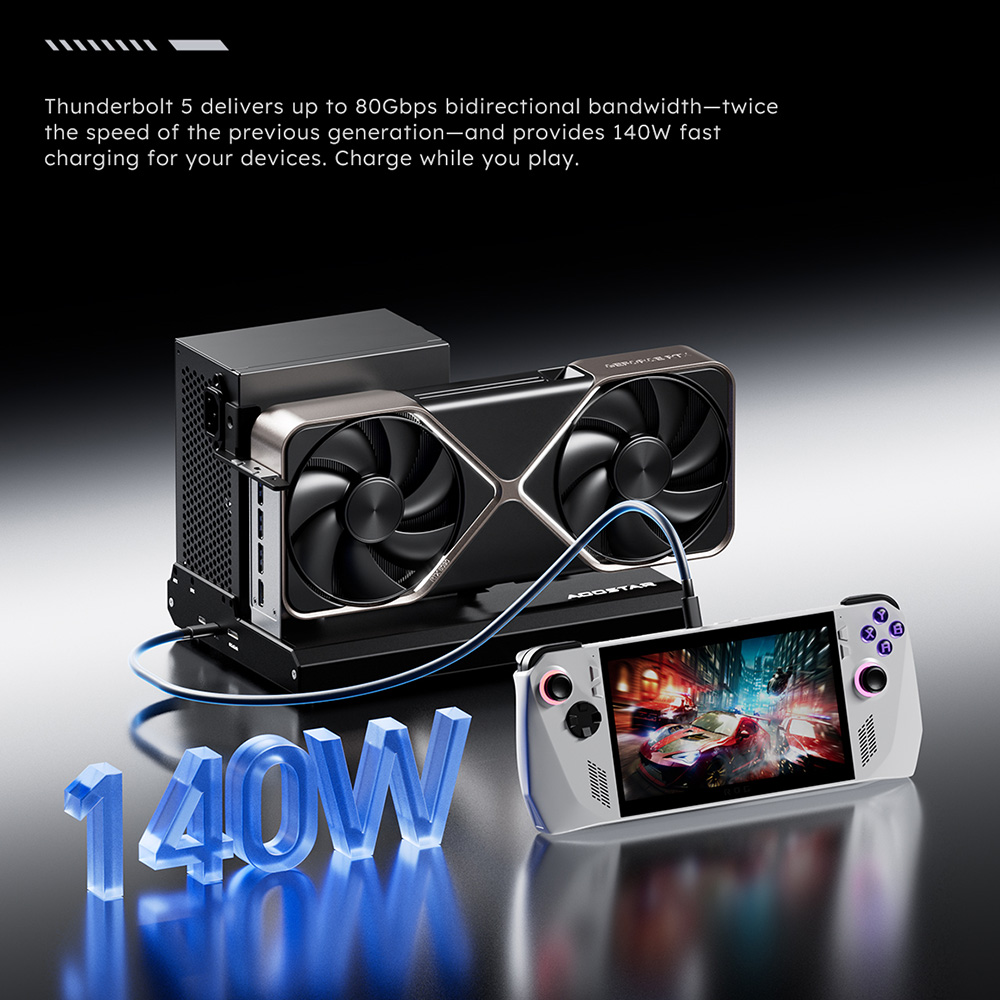 A Thunderbolt mindig is az a technológia volt, amibe könnyű beleszeretni papíron, aztán még könnyebb csalódni benne a valóságban. Nagy sávszél, egykábeles életérzés, modern csatlakozás, szépen hangzó ígéretek – aztán jött a teljesítményveszteség, a kompatibilitási mizéria, a host oldal különböző gyengeségei, meg a klasszikus „jó, de nem egészen olyan, mint reméltem” élmény. A Thunderbolt 5-tel az a remény jött vissza, hogy talán végre tényleg csökken ez a szakadék. Az AOOSTAR EG02 pedig kifejezetten az első olyan dokkolók közé tartozik, amelyek ezt a reményt nem csak szlogenként lobogtatják, hanem ténylegesen a termék lényegévé teszik. Két darab Thunderbolt 5 port, az egyik downstream oldalon 27 wattos teljesítménnyel és DisplayPort támogatással, a másik upstream irányban akár 140 wattos táplálással – ez már nem valami odadobott kényelmi extra, hanem komoly rendszerlogika. A friss techoldalak és hardveres hírek is pont ezt emelik ki: az EG02 egyik legnagyobb érdekessége, hogy a Thunderbolt 5-öt nem úgy kezeli, mint „jó, legyen rajta ilyen is”, hanem mint valós második fő útvonalat az OCuLink mellett. Ez nagyon sokat számít. Mert a valós életben nem minden gépen lesz OCuLink, és nem mindenki akar kizárólag egyetlen, hardcore bővítési logikára építeni. A TB5 itt a rugalmasságot adja meg, ráadásul sokkal komolyabb szinten, mint amit a korábbi generációknál megszokhattunk. Több első körös tapasztalat és technikai értékelés szerint a TB5-ös teljesítményveszteség ugyan még nem tűnik el, de már sokkal kevésbé fájdalmas, mint a régi korszakoknál. Ez megint csak kulcsfontosságú. Az eGPU-k valós vonzereje ugyanis nem abban áll, hogy valamit valahogy működésre bírsz, hanem abban, hogy mindezt mennyire kényelmesen, mennyire kiszámíthatóan és mennyire kevés bosszúsággal tudod megtenni. Az EG02 két Thunderbolt 5 portja pontosan ezt a világot próbálja meg kinyitni. És nekem különösen tetszik, hogy nem egyetlen használati szcenárióra van kényszerítve. Lehet downstream eszközt etetni, lehet hostot táplálni, lehet monitoros láncolásban gondolkodni, és közben még mindig ott van a háttérben az OCuLink a nyersebb, direktebb hardveres vonalra. Ez az a fajta kettősség, amitől egy dokkoló nem csak „jól felszerelt” lesz, hanem ténylegesen rugalmas platform.