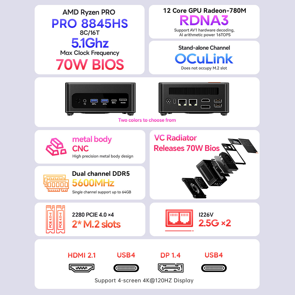 Ez nem az a mini PC, amitől mindenki automatikusan elájul. De aki érti, hogy mit jelent egy Ryzen 7 Pro 8845HS + Oculink + 2.5G LAN + négykijelzős támogatás kombó egy ilyen pici házban, az pontosan tudni fogja, hogy itt egy kifejezetten izgalmas vasról van szó.