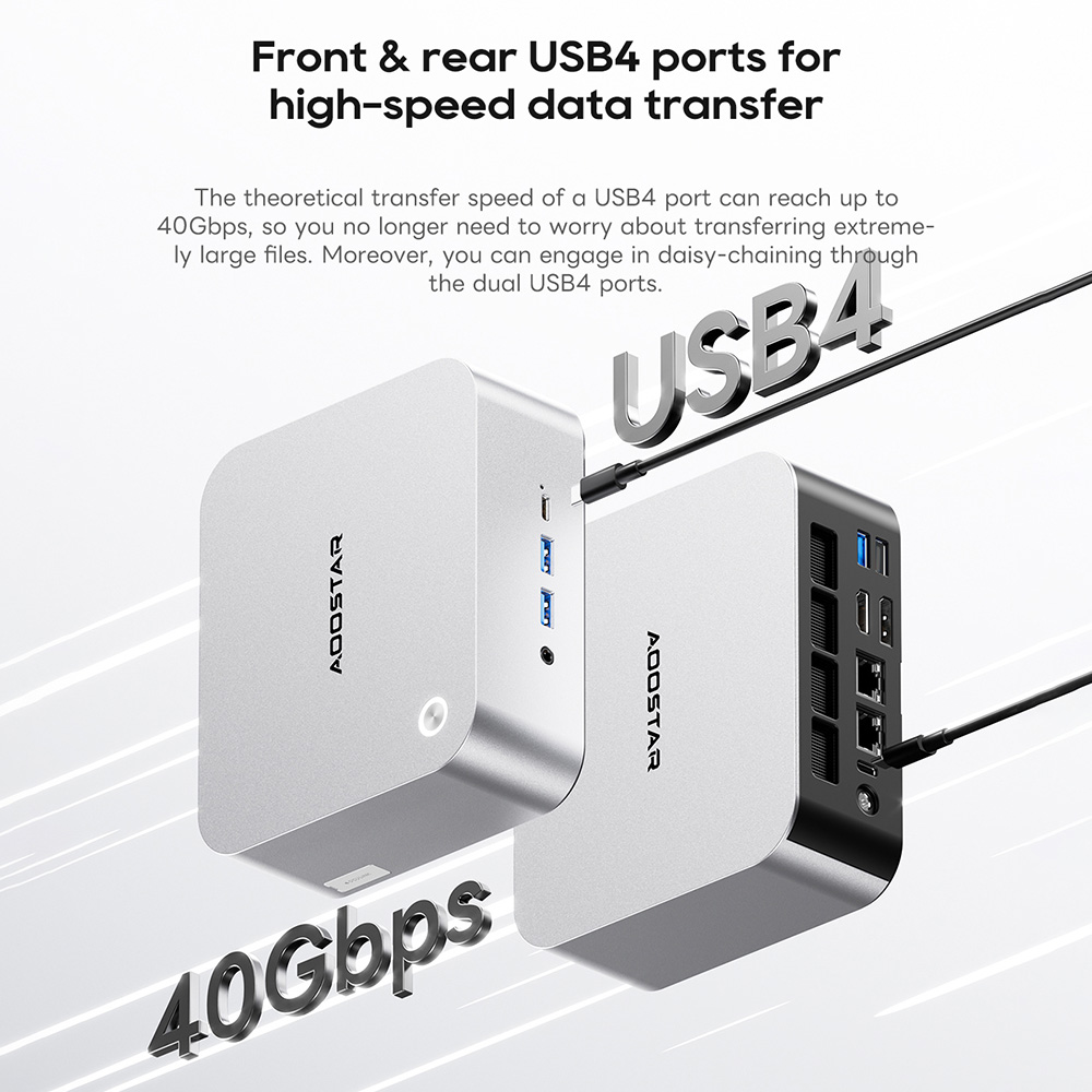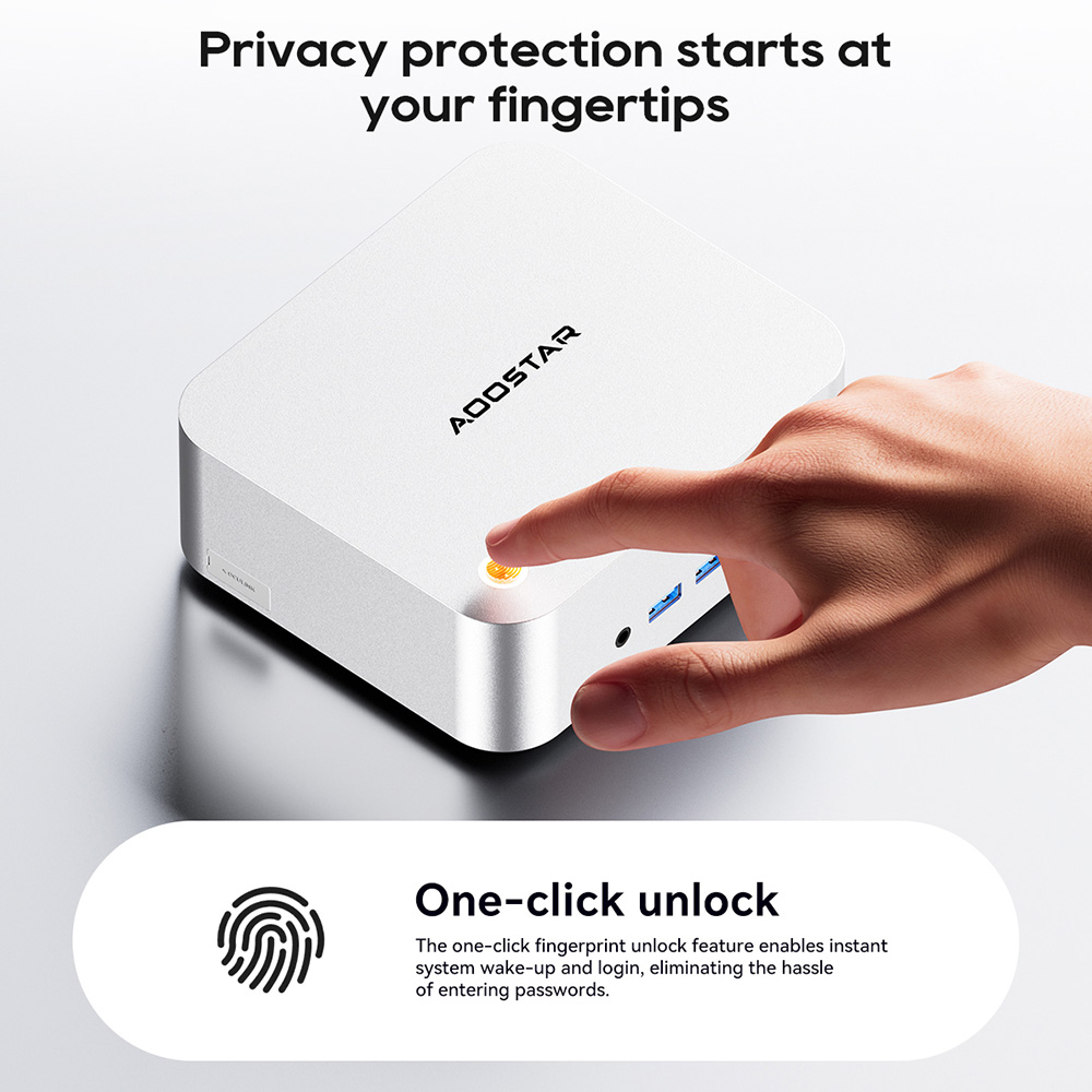 - erős Ryzen 7 processzor, Radeon 780M integrált grafika, két USB4, OCuLink, dupla 2.5G LAN, akár négy kijelző támogatása, barebone szabadság, ujjlenyomat-feloldás.