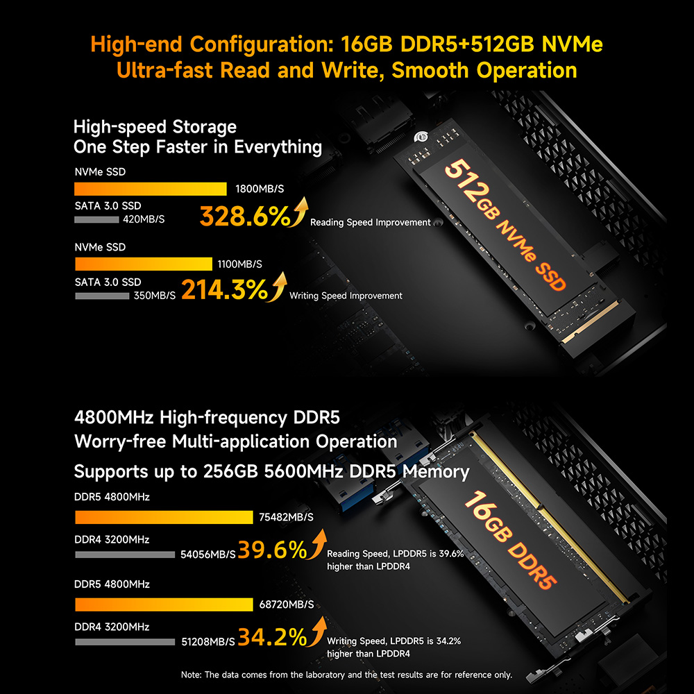 A 16 GB DDR5 RAM és 512 GB NVMe SSD nem extrák, hanem minimumok – és jó látni, hogy itt nem spóroltak.