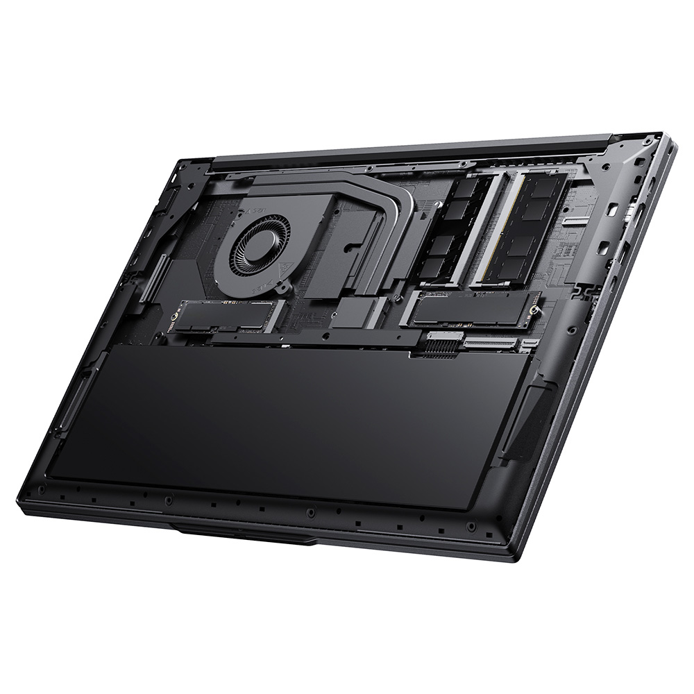 A dedikált hűtőventilátor és a kettős hőcsöves kialakítás nem annyira látványos marketingelem, mint az RGB vagy a nevetségesen túlírt AI-funkciók, de a való életben sokkal többet ér. A CoreBook Plus célja láthatóan az, hogy terhelés alatt is stabil maradjon, ne csak az első tíz percben mutassa meg, mire képes.