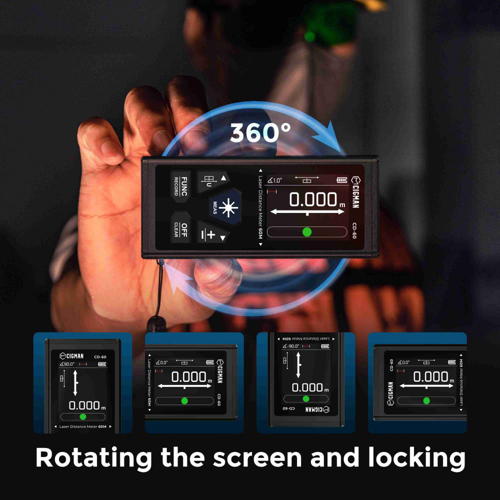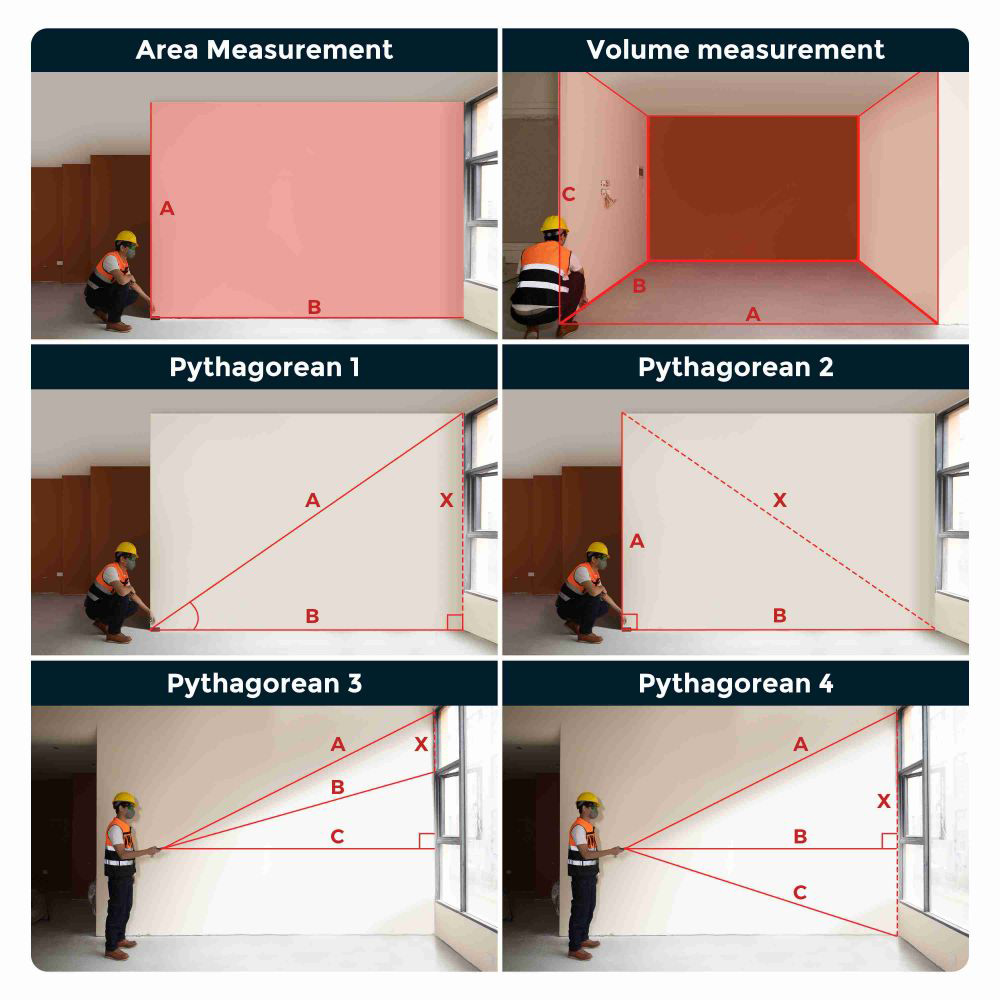 A CD-60 nem áll meg a sima távolságmérésnél. Tud területet számolni, térfogatot, Pitagorasz-mérést, folyamatos mérést.