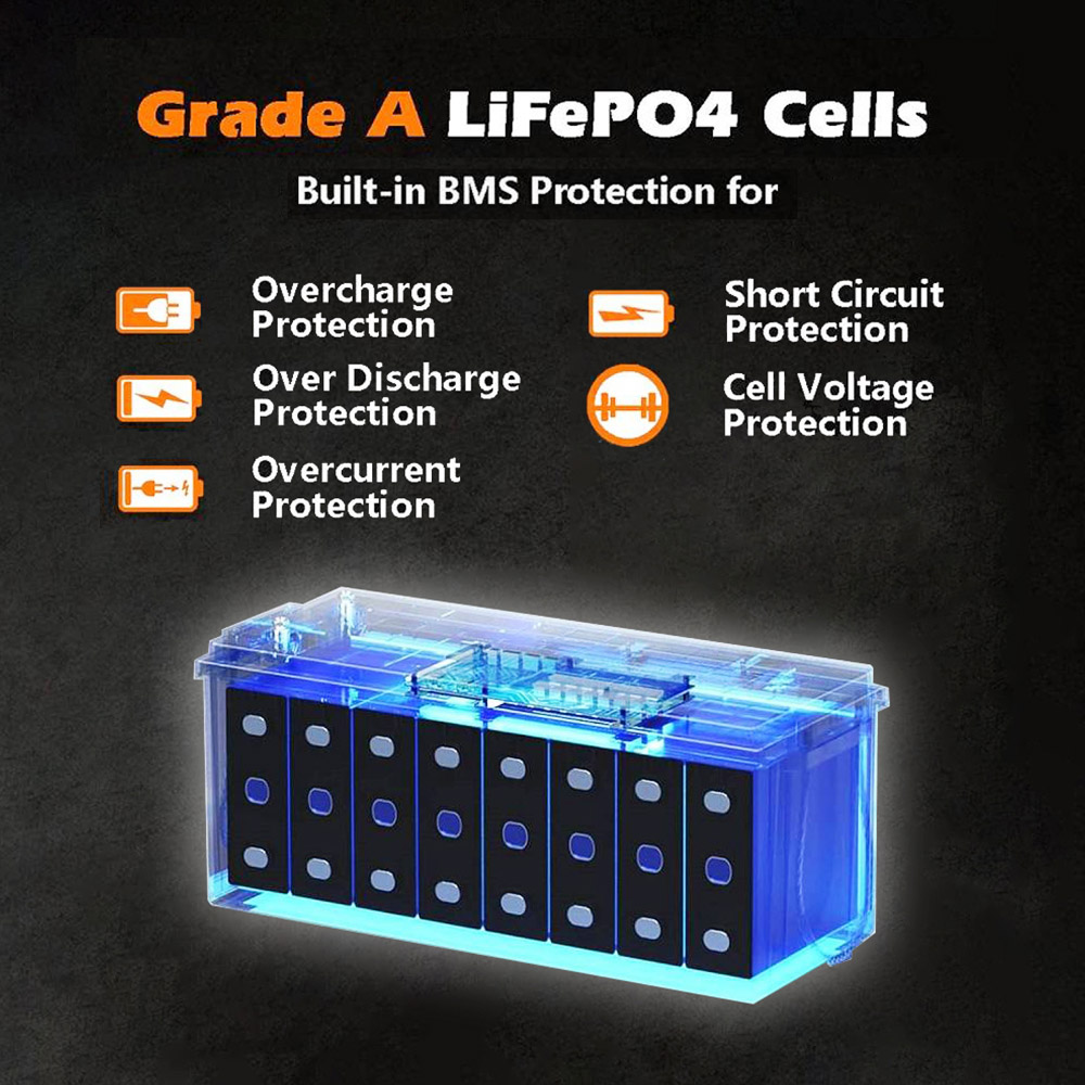 A 100 amperes beépített BMS talán kevésbé látványos, mint a kapacitás vagy a ciklusszám, de valójában ez az akkumulátor egyik legfontosabb része. A BMS, vagyis az akkumulátormenedzsment-rendszer felel azért, hogy a csomag védve legyen túltöltés, túlmerítés, túláram és rövidzárlat ellen, és ez egy ilyen kategóriájú energiatárolónál nem extra, hanem kötelező józanság.