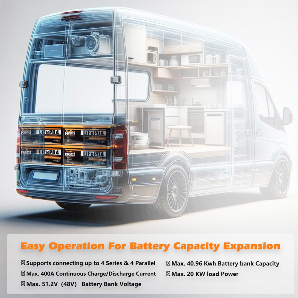 - nagy, valóban komoly 2560 Wh / 200 Ah kapacitás
