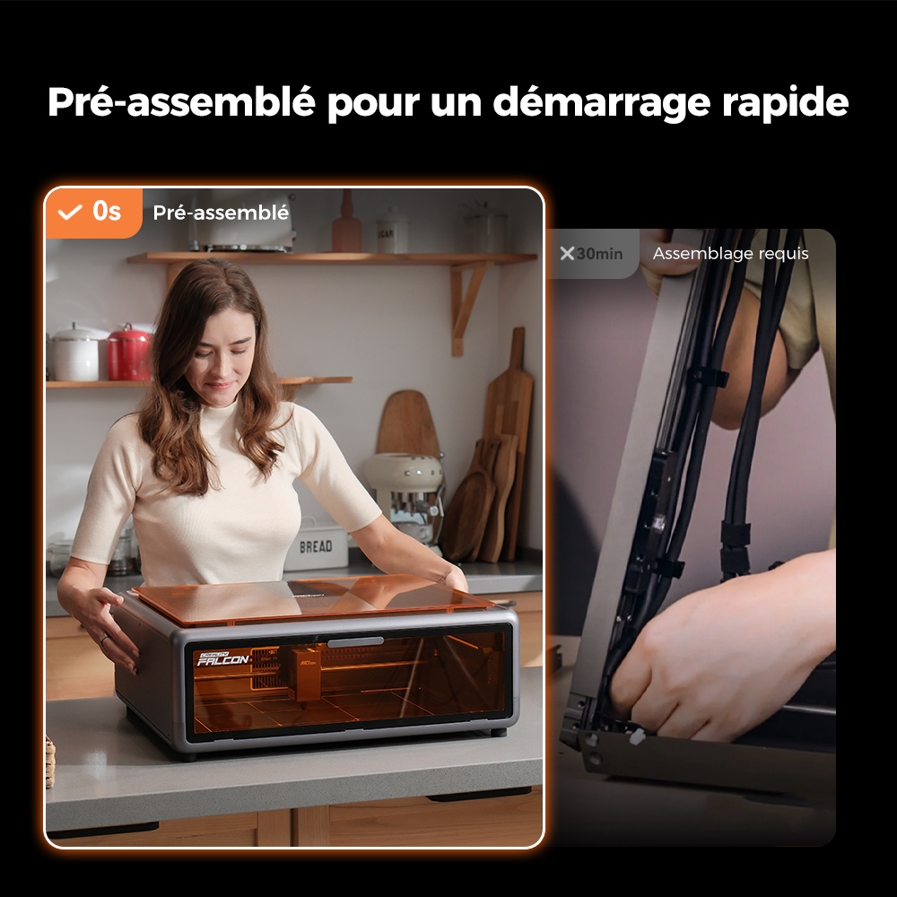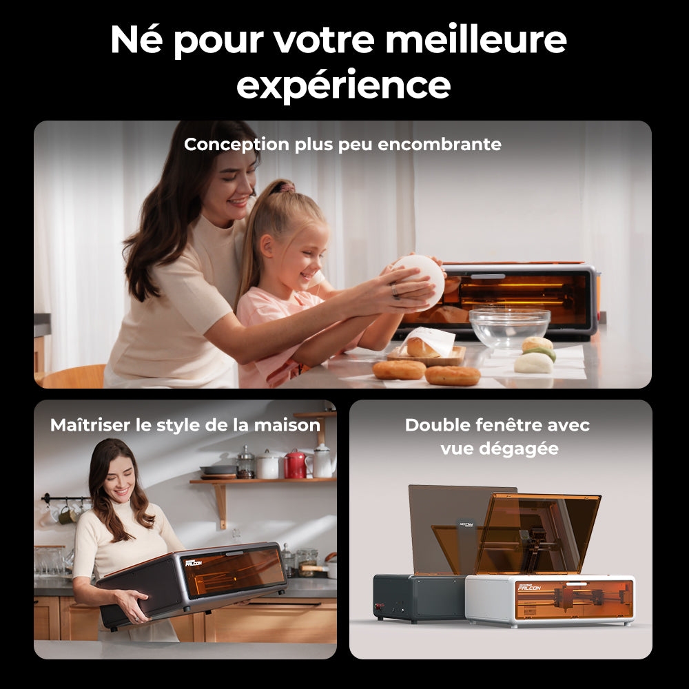 A Falcon A1 zárt kialakítása, a szemvédő burkolat, a vészleállító, a lézerszivárgás elleni védelem – ezek mind azt erősítik, hogy ez a gép nem akar veszélyes lenni.