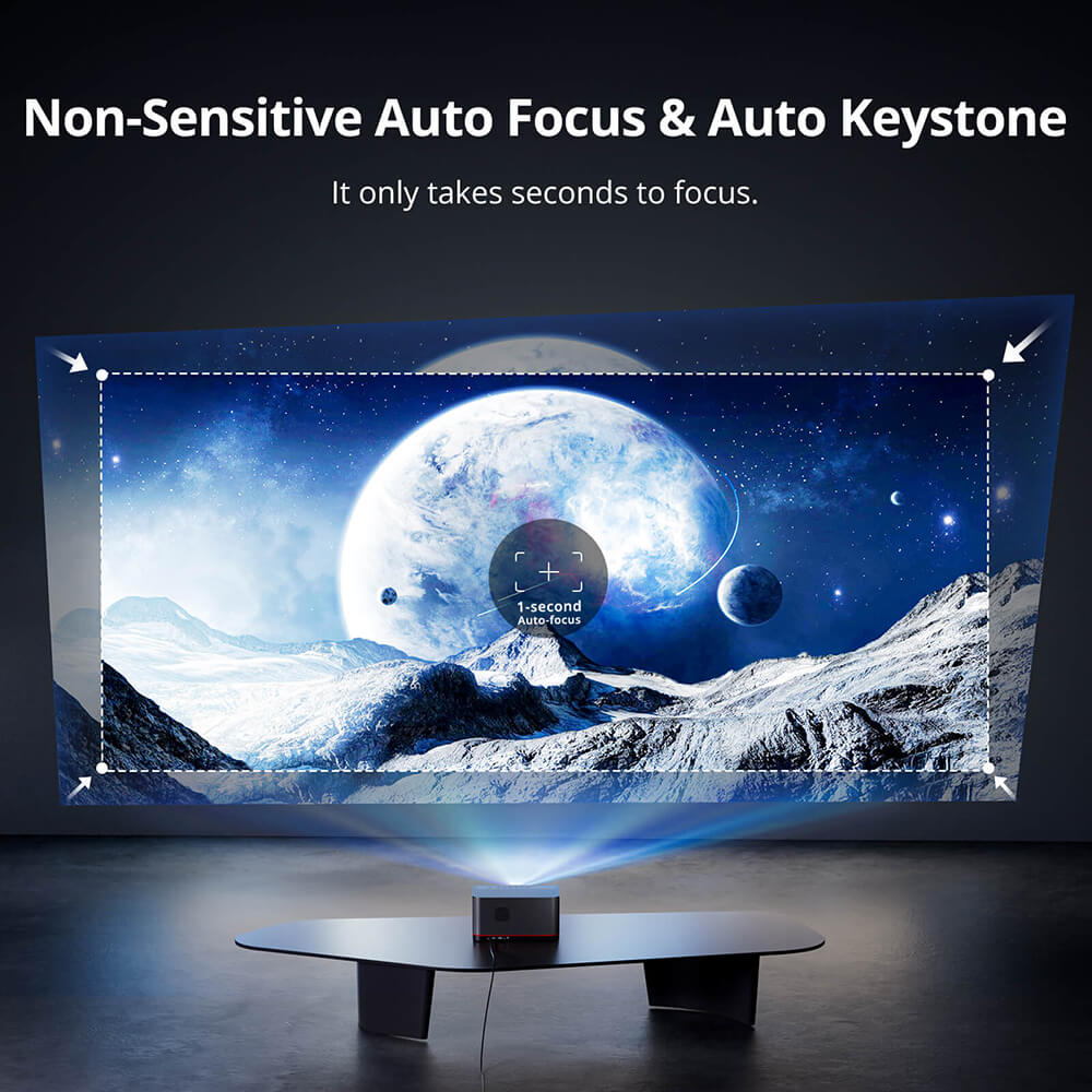 Leteszed a projektort, bekapcsolod, és 1-2 másodperc alatt beállítja magát. Éles kép, egyenes szélek, nincs babrálás.