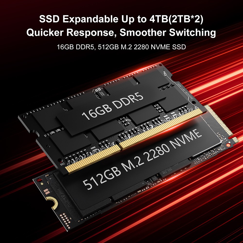 A kétcsatornás memóriavezérlés és a 64 GB-ig bővíthető kapacitás külön jó hír. Mert ez már azt mutatja, hogy a FIREBAT nem egyszer használatos, zárt kis dobozként gondolkodott a gépről, hanem hagyott benne teret a jövőnek is. Ha valaki komolyabban beleállna a tartalomgyártásba, fejlesztésbe, virtualizációba vagy egyszerűen csak szeret sok mindent futtatni egyszerre, ez a bővítési lehetőség már nem csak szép sor a dobozon, hanem valódi érték.