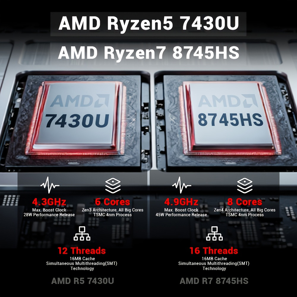 A középpontban a 8 magos / 16 szálas AMD Ryzen 7 8745HS dolgozik, akár 4,9 GHz-es turbóval. Ez már az a kategória, ahol: