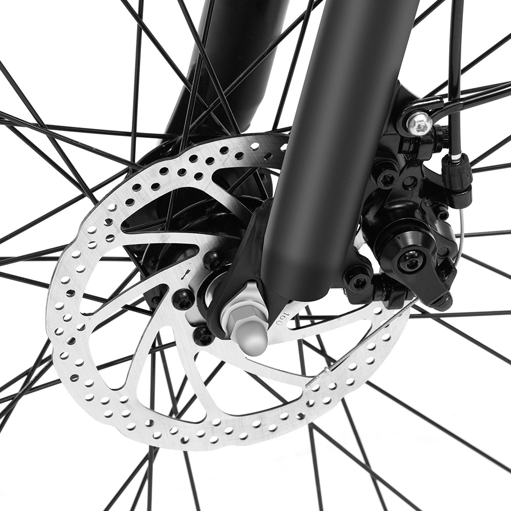 A Roamer 1 80 mm rugóutas, zárható első felfüggesztést kapott, és ez ismét egy olyan pont, ahol nagyon sok gyártó szeret túl nagy dolgokat állítani. Itt én inkább maradok a földön: ez nem egy komoly hegyikerékpáros villa, nem terepes csodafegyver, és nem is akar annak látszani. Viszont arra, amire ezt a bringát kitalálták – városi hibák, padkaátvezetések, bicikliút-repedések, rosszabb aszfalt, apróbb földutas kitérők –, kifejezetten hasznos és kellemes társ. A lockout funkció külön jó dolog, mert simább szakaszon tényleg jobb érzés feszesebbre venni a bringát, mint fölöslegesen bólogatni rajta. A termékbemutatók és friss webes ajánlók is ezt hangsúlyozzák: nem a terepes teljesítmény a lényeg, hanem hogy kevésbé legyen büntetés a hétköznapi útminőség. Használat közben nekem is pont ez jött át. Nem csinált csodát, de levett annyit az útból, amitől a bringa kulturáltabbnak, felnőttesebbnek érződött.