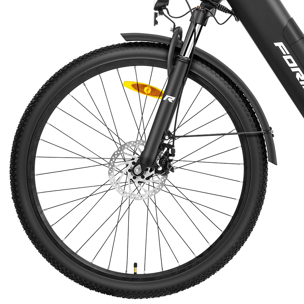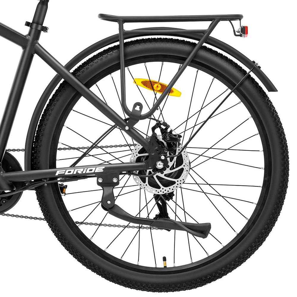 A Foride Roamer 1 mechanikus tárcsaféket és elektromos féket használ, ami ma már nem számít különleges csúcstechnikának, de ebben a kategóriában egyáltalán nem rossz választás. A fontosabb kérdés az, hogy illik-e a bringa karakteréhez, és szerintem igen. A 25 km/h-s pedelec-világban, egy ilyen nyugodtabb ingázó-túrázó bringánál nekem fontosabb a kiszámíthatóság, mint az, hogy technikai adatlapokon nagyobbat villanjon. A Roamer 1 fékérzete pont olyan, mint a bringa egésze: nem drámázik, nem akar sportosnak tűnni, hanem rendesen teszi a dolgát. A külső termékleírások is pozitívumként kezelik, hogy a rendszer az elektromos rásegítéssel együtt dolgozva ad egy biztosabb, kontrolláltabb megállási élményt. És igen, ezt a gyakorlatban is könnyű értékelni.