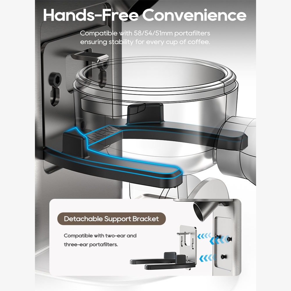 - Kéz nélküli portafilter használat, kényelmes és stabil