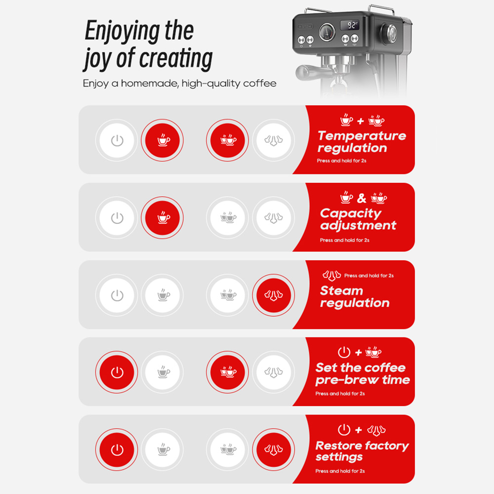 - Programozható hőmérséklet, kávémennyiség és előfőzési idő