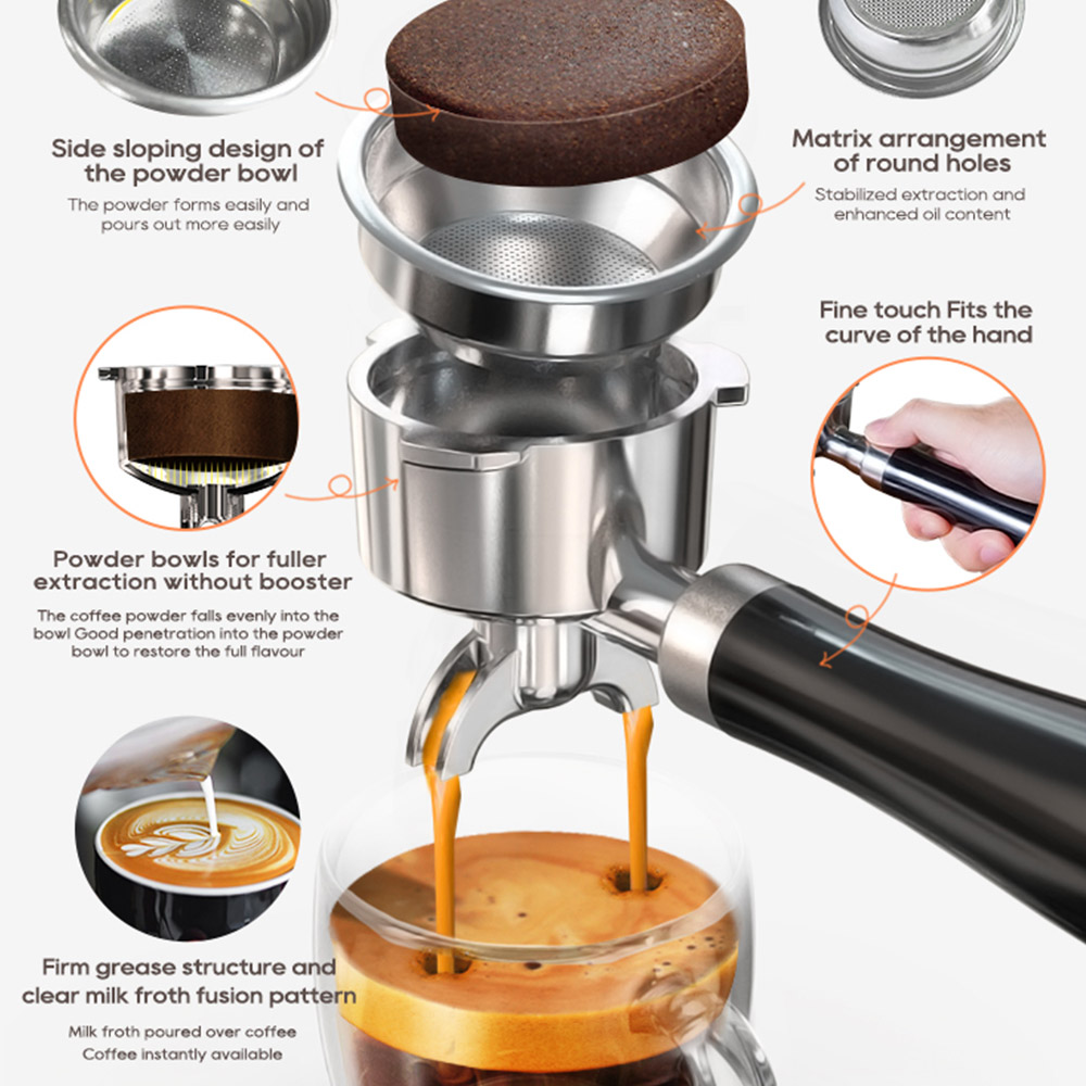 - 58 mm-es portafilter, komolyabb kezelhetőséggel