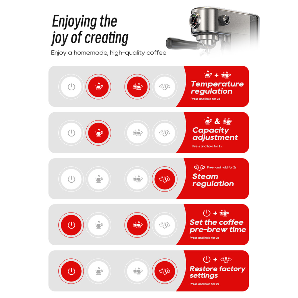 - A H10B meglepően sok valós kontrollt ad a kategóriájában: állítható főzési és gőzhőmérsékletet, programozható előáztatást, látható nyomást és beállítható italvolument. Az eszpresszó minősége jó darálóval és normális kávéval kifejezetten meggyőző, a gőzkar pedig nem csak alibi, hanem tényleg használható tejtextúrához is. A keskeny forma, a rozsdamentes acél test és a napi használhatóság sokat hozzáad ahhoz, hogy ne csak érdekes, hanem ténylegesen élhető gép legyen.