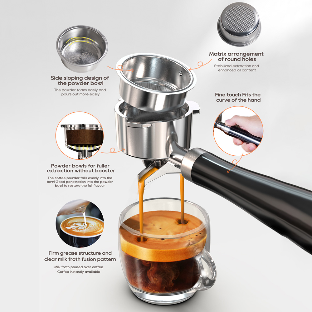 A 51 mm-es portafilter-méret az a pont, ahol a komolyabb otthoni eszpresszóőrültek már fél mosollyal legyintenek, mert fejben rögtön a 58-as, ipari szabványos világ felé indulnak. És igen, ebből a nézőpontból a H10B nem a végtelen kiegészítő-kompatibilitás szent grálja. De ettől még az 51 mm-es kar egyáltalán nem tragédia. Sőt, a H10B esetében inkább azt érzem, hogy a gép egész karakteréhez passzol. Könnyebben kezelhető, kompaktabb, kevésbé megfélemlítő, és az alumíniumötvözet kar fogása is rendben van. Nem luxusélmény, de nem is gagyi.
