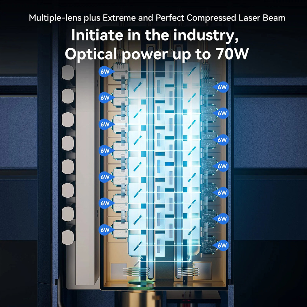 - extrém gyors működés (900 mm/s), erős 70W teljesítmény, precíz gravírozás, kompaktabb méret, intelligens autofókusz és Z-tengely, offline vezérlés.