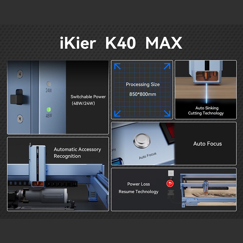 Az IKIER K40 MAX első ránézésre nem tűnik forradalminak, főleg ha már találkoztál a 70W-os szörnyekkel vagy a 900 mm/s tempót diktáló modellekkel. Itt „csak” 40–48W teljesítményt kapsz, „csak” 600 mm/s sebességet, viszont cserébe olyasmit ad, amit sok felhasználó fontosabbnak tart: kiegyensúlyozottságot. Az online visszajelzések alapján ez a modell kifejezetten azok körében népszerű, akik már kinőttek a hobbigépeken, de még nem akarnak ipari kategóriába ugrani.