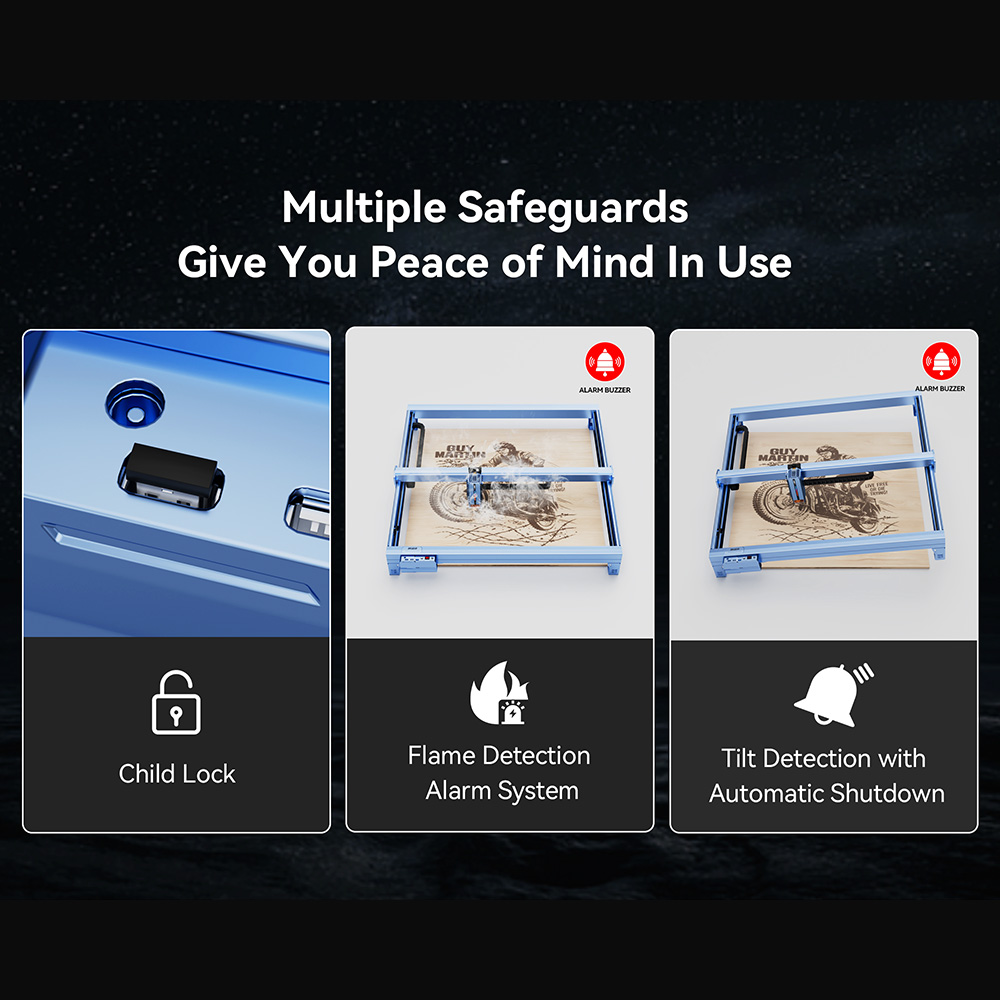 Az autofókusz ma már nem extra, hanem elvárás – és itt jól működik. Egy gombnyomás, és a gép beállítja magát. Nincs méricskélés, nincs manuális állítgatás. A motoros Z-tengely és az automatikus süllyedő vágás együtt dolgozik azon, hogy a vágás mélyebb és tisztább legyen. Vastagabb anyagoknál ez különösen fontos, mert a fókusz folyamatosan követi a vágási mélységet. Az eredmény: kevesebb égett él, kevesebb utómunka, kevesebb idegeskedés.