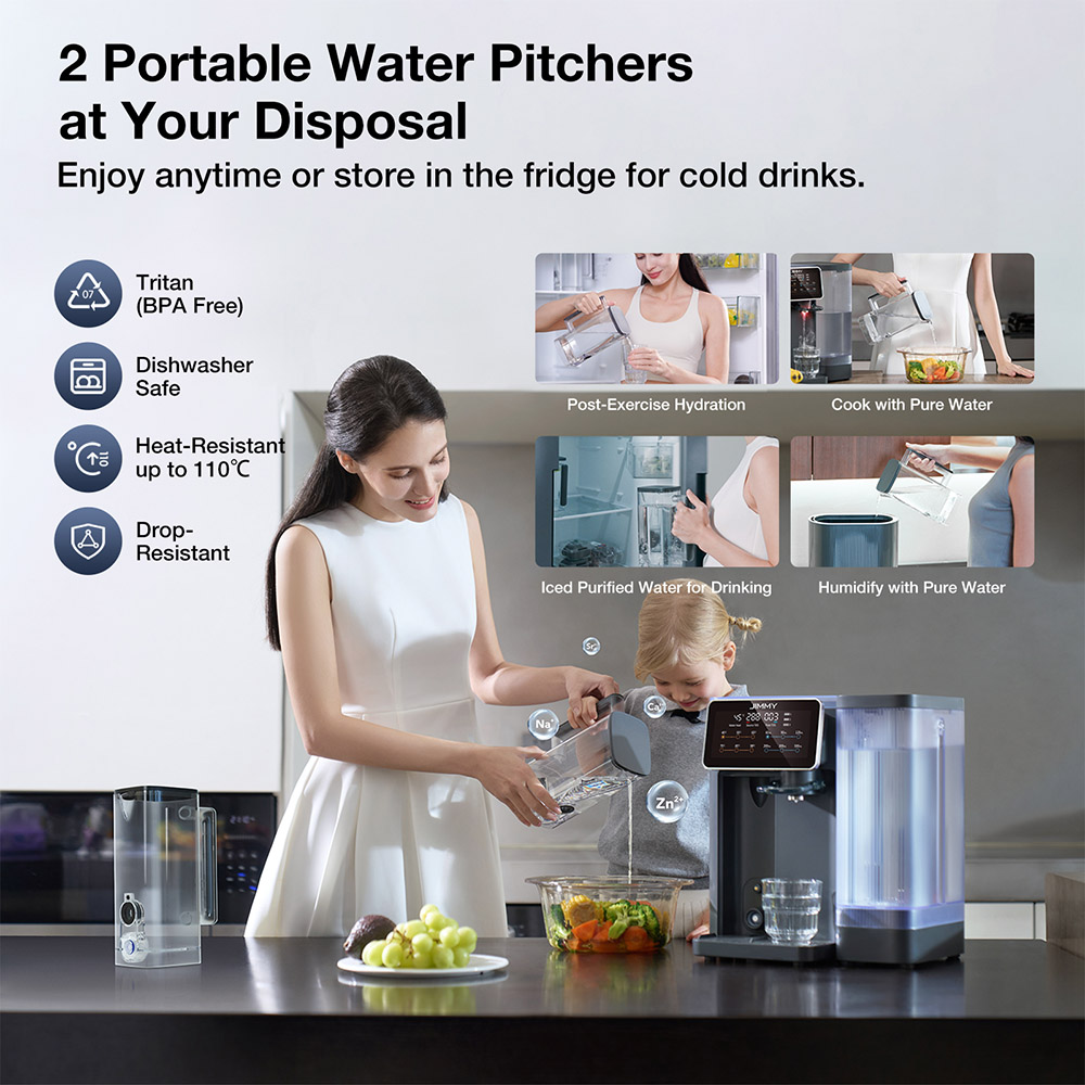 A két Tritan kancsó pedig meglepően praktikus. Nem csak azért, mert BPA-mentesek, hanem mert tényleg használhatóvá teszik a rendszert a lakás különböző pontjain.
