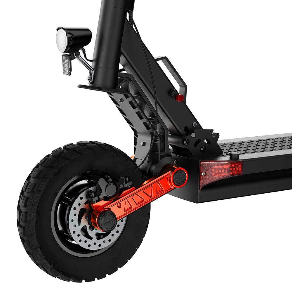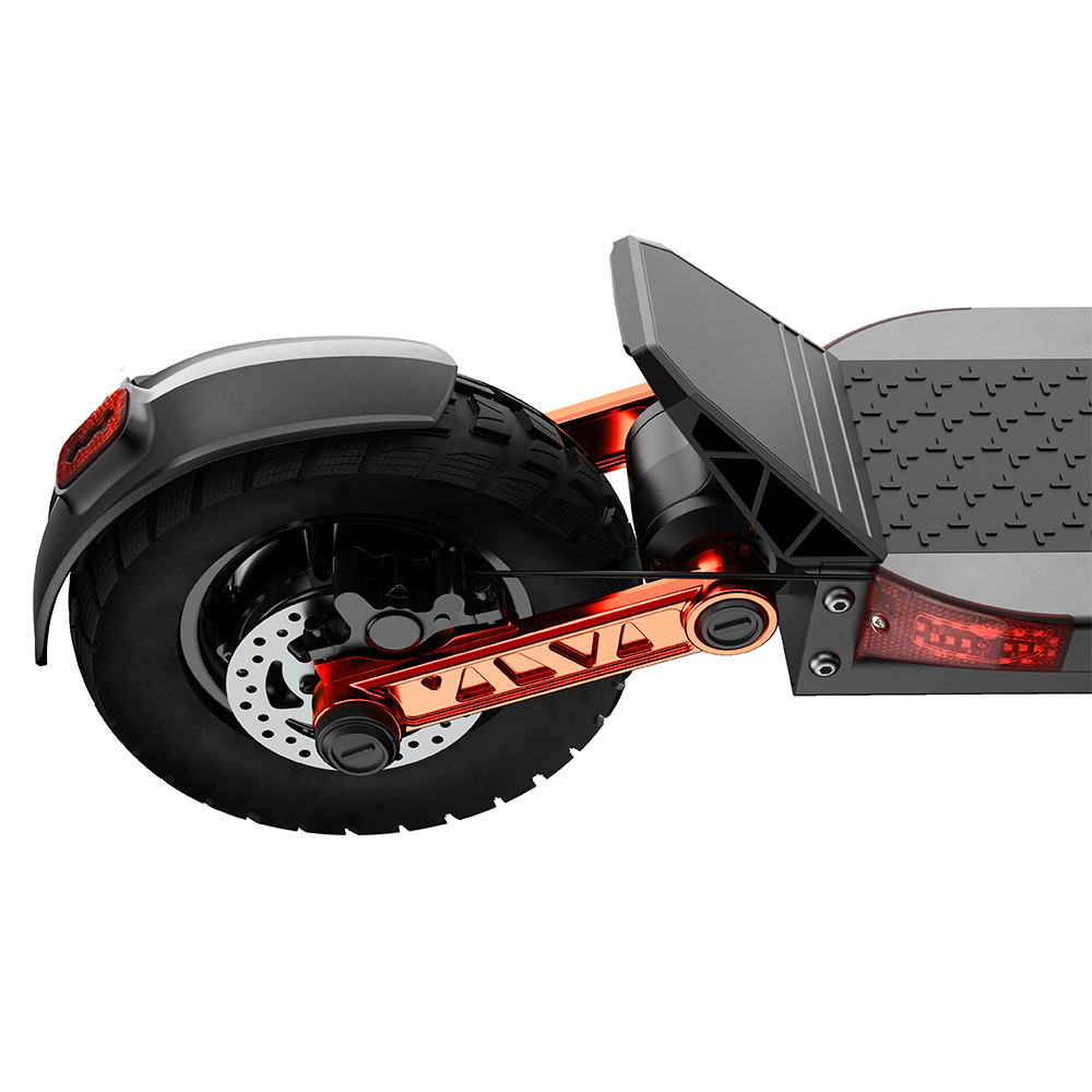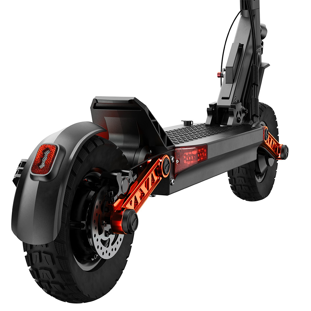 A kettős felfüggesztés és a 10 colos terepgumik együtt egy teljesen más élményt adnak, mint az átlag rollerek.