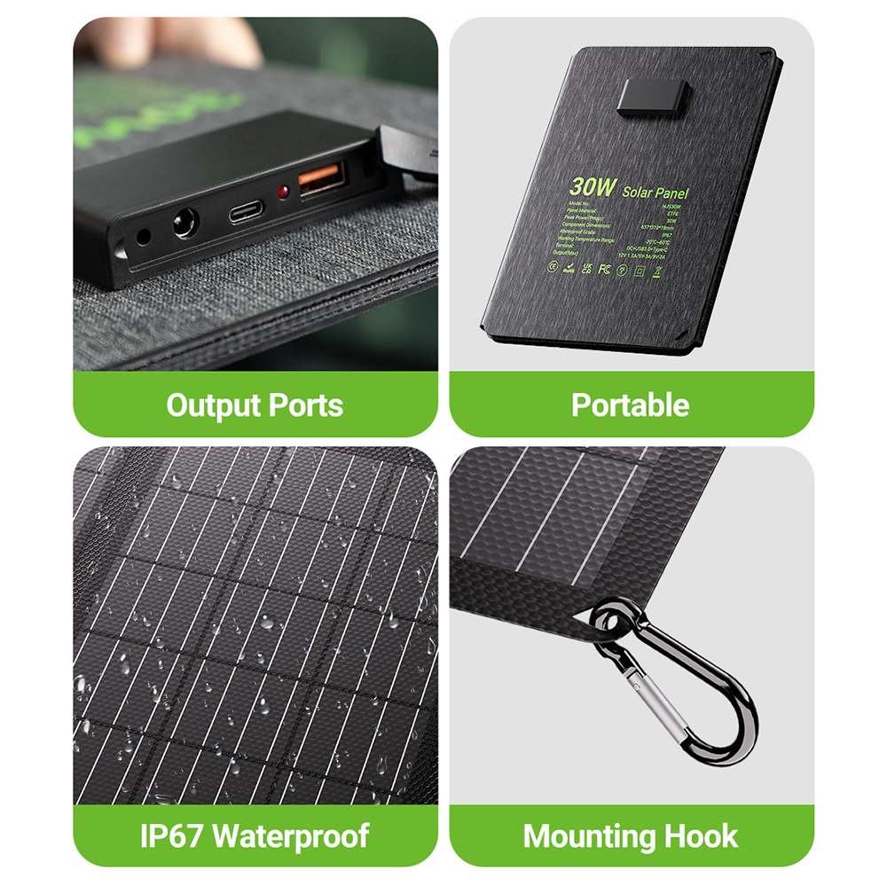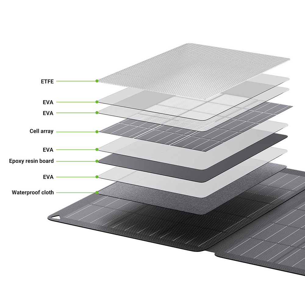 - valóban hordozható és könnyű, strapabíró ETFE panel, egyszerű közvetlen töltés, jó hatásfok napsütésben, praktikus rögzítés