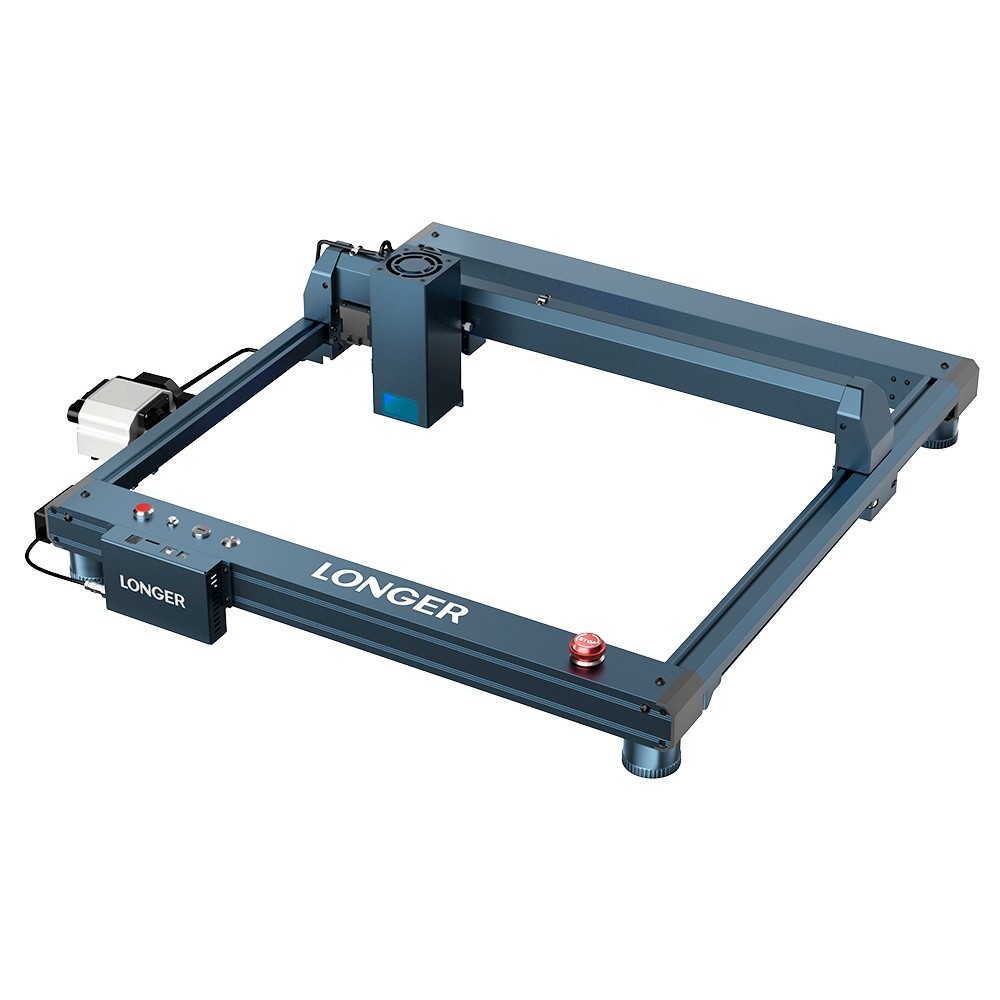 A LONGER Laser B1 20W-nál már a puszta jelenlét is mást sugall, mint a kisebb, óvatosabb diódalézereknél megszokott „majd meglátjuk, mire lesz elég” hangulat. A 450 x 440 milliméteres munkaterület, a masszív alumínium váz, a nagyobb lézerfej, a komolyabb kábelezés, az automatikusan vezérelhető air assist pumpa, az XY végálláskapcsolók és az egész összhatás inkább azt mondja: itt már nem a kompromisszum a főszereplő, hanem a használhatóság. A LONGER hivatalos termékoldala és a B1 wiki is pontosan ezt hangsúlyozza, a külső tesztek pedig többnyire egyetértenek abban, hogy a B1 20W az a modell, amelyik már túlmutat a puszta kezdőszinten, miközben még nem csúszik át a műhelyterror drága, zárt rendszerű világába. Nekem pontosan ez tetszett meg benne. Nem akar ipari CO₂-gépnek látszani, de nem is akarja eljátszani a szerény kis hobbieszközt, inkább vállalja, hogy egy komolyabb, gyorsabb, nagyobb étvágyú diódalézerről van szó, amit akkor fogsz igazán szeretni, ha nem csak dísztárgyakban és próbakörökben gondolkodsz, hanem konkrét projektekben, sorozatokban, vágásban és használható munkafolyamatokban.