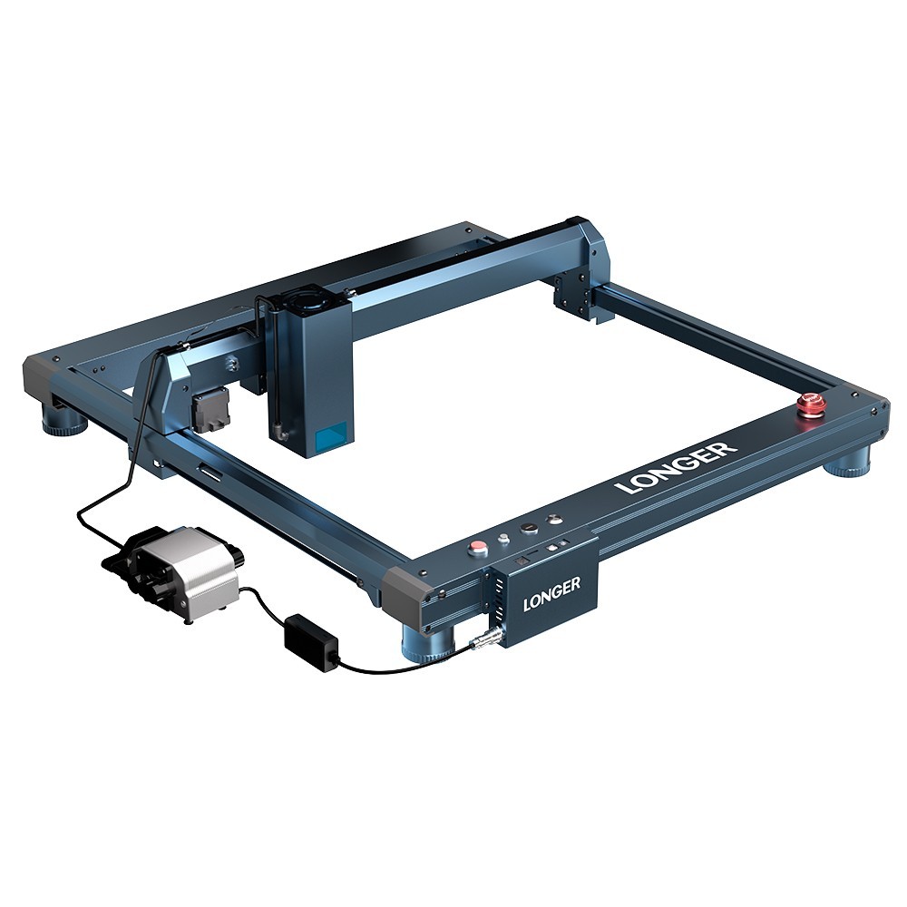 A gép egyik legjobb húzása szerintem az intelligensen vezérelhető air assist rendszer. A LONGER hivatalos oldala szerint a szivattyú automatikusan ki- és bekapcsolható a programban beállított paraméterek alapján, és a dobozban gyárilag ott van maga a pumpa, a szelep és a szilikon cső is. Ez első olvasatra lehet, hogy nem túl szexi funkció, de a valóságban az egyik legfontosabb. A vágási minőség, a füstkivezetés, az elszenesedés csökkentése, a tisztább élek és a jobb lángkontroll mind olyan terület, ahol a levegőrásegítés dönti el, hogy a végeredmény „jó lesz” kategória marad-e, vagy ténylegesen szépen használható lesz. A külső értékelések is rendre kiemelik, hogy a B1 egyik komoly előnye, hogy nem kell külön, utólag barkácsolni a légsegítéses workflow-t, mert a rendszer eleve úgy van kitalálva, hogy része legyen a normál használatnak. Nekem ez óriási plusz. Mert egy jó lézergép nem csak nyers erőből lesz jó, hanem attól, hogy a köré épített kiegészítők és munkafolyamatok nem érződnek félkész szükségmegoldásnak. A B1 20W-nál az air assist pontosan ezt mutatja: nem valami utólag odadobott extra, hanem a gép karakterének szerves része.