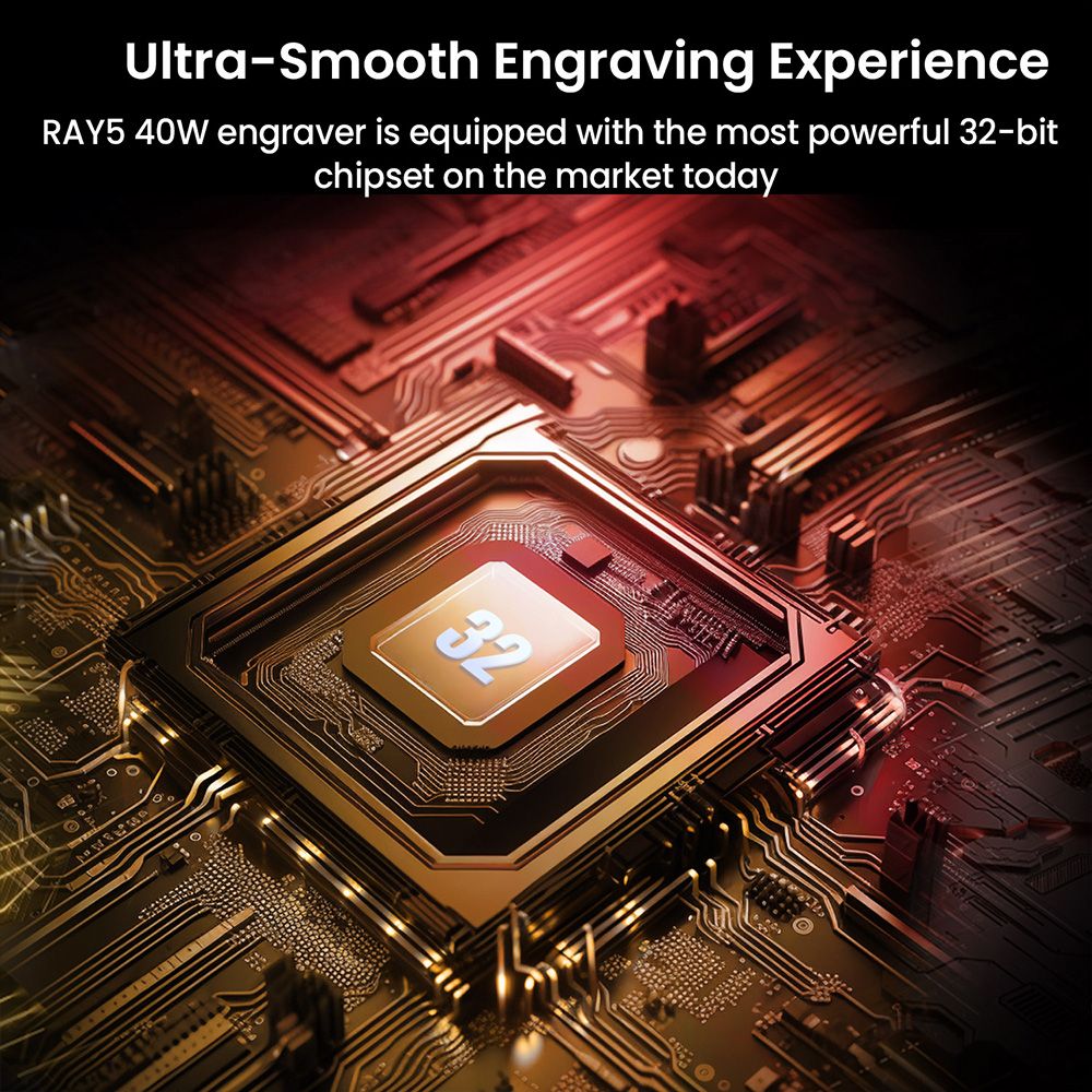 Aki próbált már kisebb lézergravírozót, annak a RAY5 első ránézésre is más liga. Nem csak nagyobb – komolyabb jelenléte van. A 385×385 mm-es munkaterület konkrétan kinyitja a játékteret. Nem kell többé sakkozni azzal, hogy mi fér bele, mi nem, hogyan darabold fel a mintát.