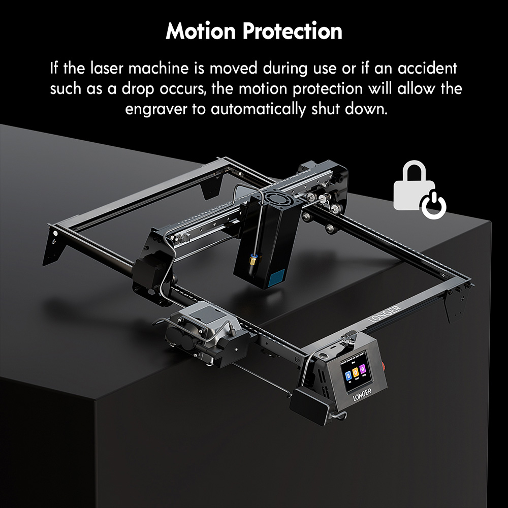Dőlésérzékelő, lángérzékelő, adatkapcsolat-figyelés, lézerfej „lefagyás” detektálás – és mindez automatikus leállással.