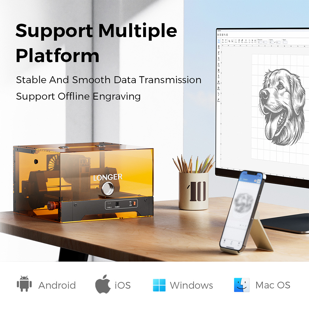 - Erős 10W lézer, ami nem ijed meg a komolyabb anyagoktól sem