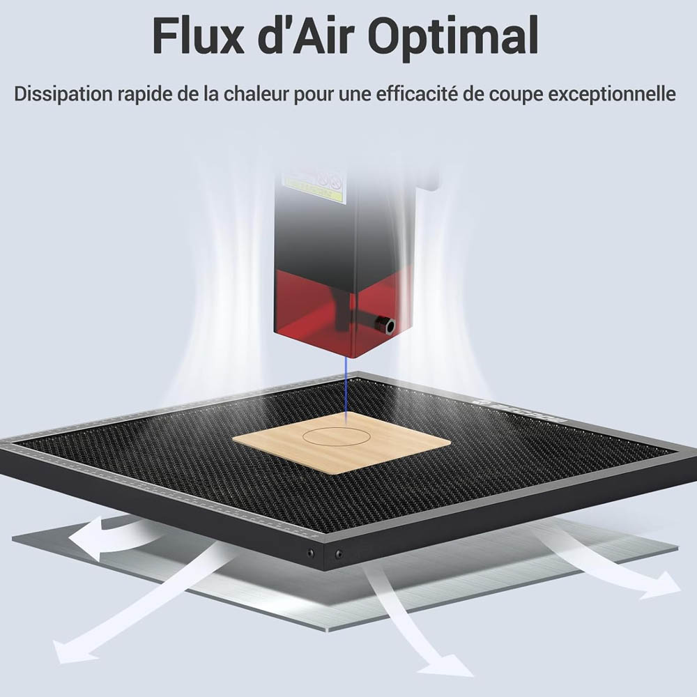 A méhsejt kialakítás miatt az anyag nem fekszik fel egy sík felületre, így a lézersugár nem verődik vissza alulról. Ez papíron jól hangzik, de a gyakorlatban: