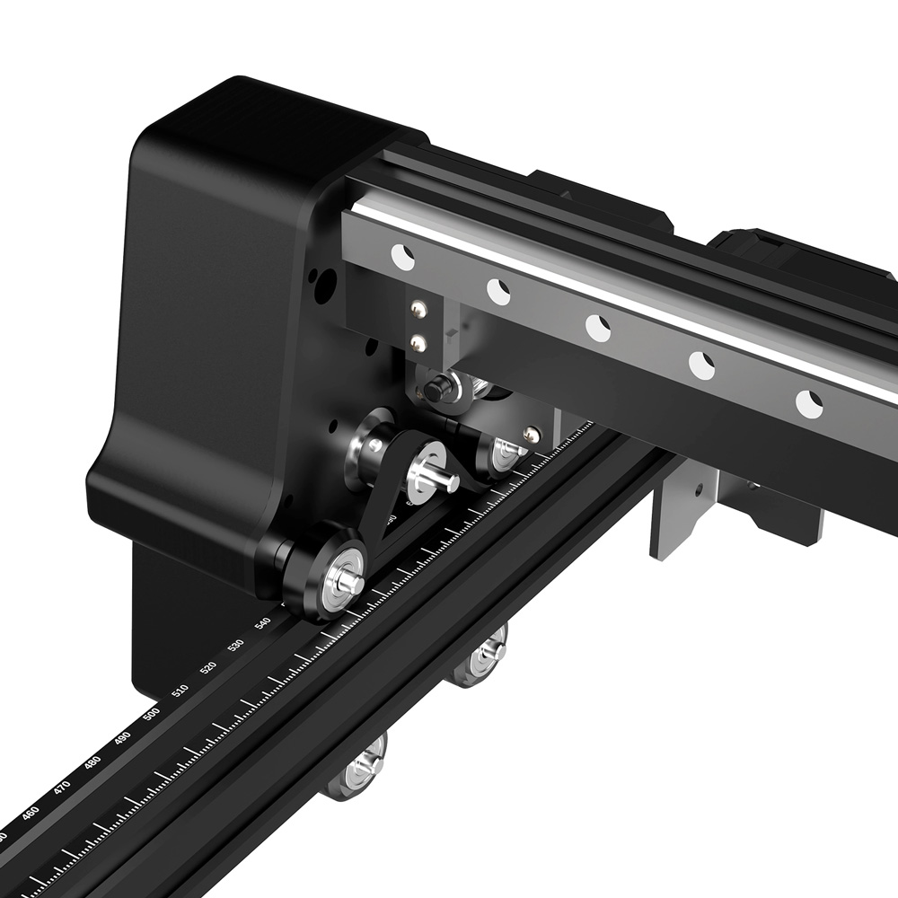 A 600 × 600 mm-es munkaterület rögtön más ligába teszi az X5 Pro-t. Nem azért, mert ettől hirtelen ipari szörnyeteg lesz, hanem mert végre nem kell minden komolyabb ötletet rögtön méretkorláthoz igazítani. Nagyobb fatáblák, több kisebb darab egyszerre, szélesebb dekoranyagok, összetettebb kompozíciók – itt már van levegő dolgozni.