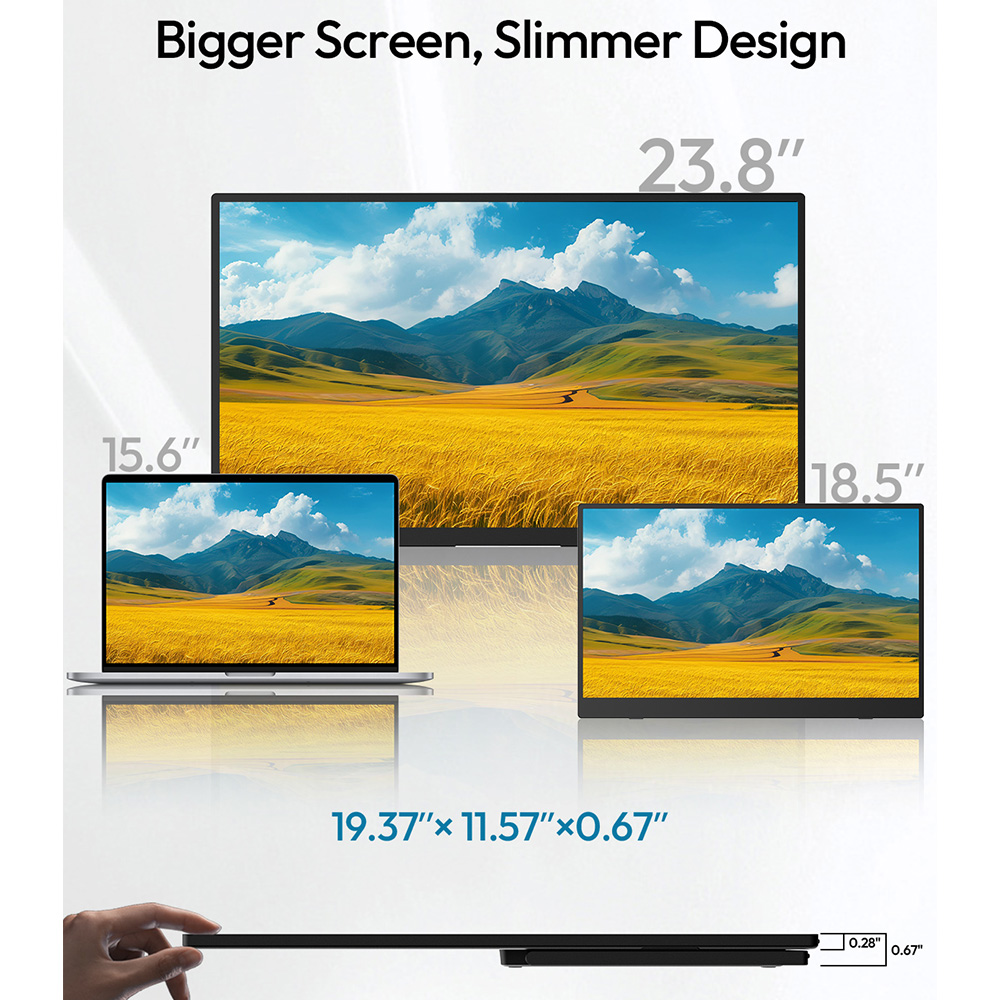 Kicsomagolva az első, ami feltűnt, az a méret. A 23,8 hüvelykes panel papíron is nagy, de amikor tényleg ott van előtted egy „hordozható” kijelző ekkora felülettel, az agyad egy pillanatra megakad. Ez már nem az a kis kiegészítő monitor, amit csak odacsapsz a laptop mellé – ez konkrétan munkafelület.