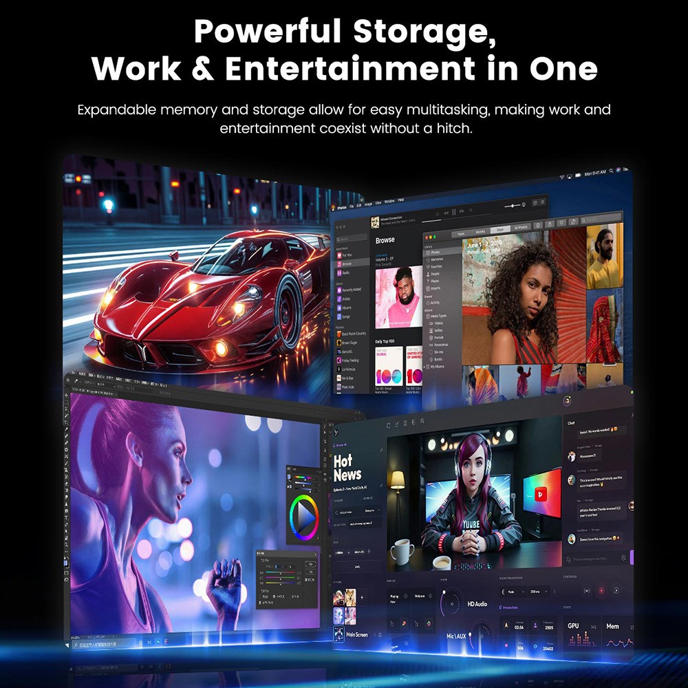 Nem arról van szó, hogy leváltasz vele egy high-end gamer PC-t, de 1080p–1440p környékén simán vállalható élményt ad, és ami még fontosabb: stabilan. Videószerkesztés, 3D preview, többablakos munka – ezek mind természetes terepei.