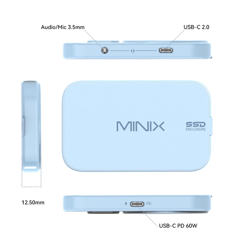 A hőkezelés az SSD házak Achilles-sarka. Főleg NVMe meghajtóknál, ahol a teljesítmény és a hőtermelés kéz a kézben jár. A MINIX itt grafénfilmes hűtést emleget, ami elsőre megint csak marketingnek tűnhet, de a visszajelzések alapján tényleg működik. Nem arról van szó, hogy jéghideg marad minden, hanem arról, hogy nem melegszik túl, és nem kezd el throttlingolni hosszabb használat alatt sem. Ez az a finom különbség, amit csak akkor veszel észre, amikor már nincs probléma. Nem kell figyelni rá, nem kell pihentetni, nem kell trükközni. Egyszerűen stabil. És ez egy ilyen eszköznél kulcsfontosságú.