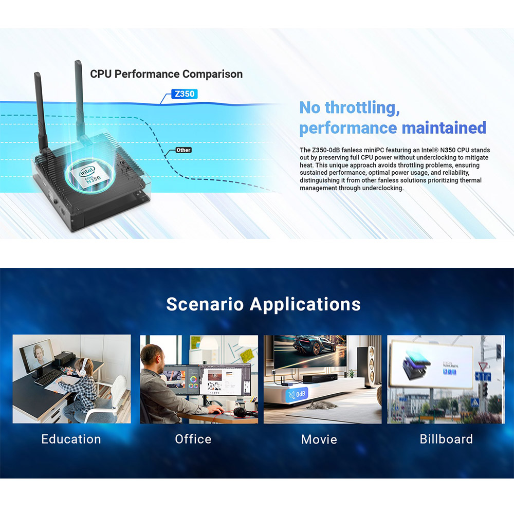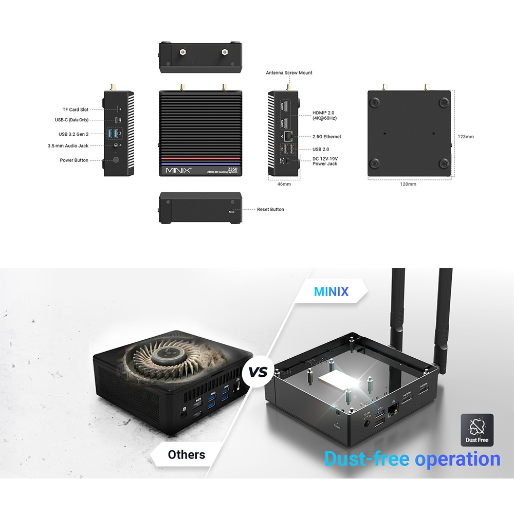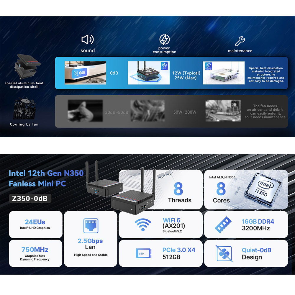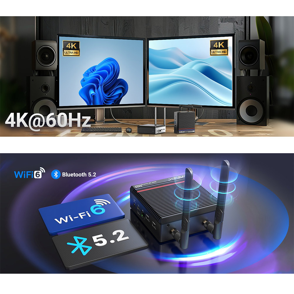 - teljesen csendes (0 dB) működés, kompakt és masszív fémház, két 4K kijelző támogatása, gyors hálózat (WiFi 6 + 2.5G LAN), korrekt alap teljesítmény, VESA kompatibilitás.
