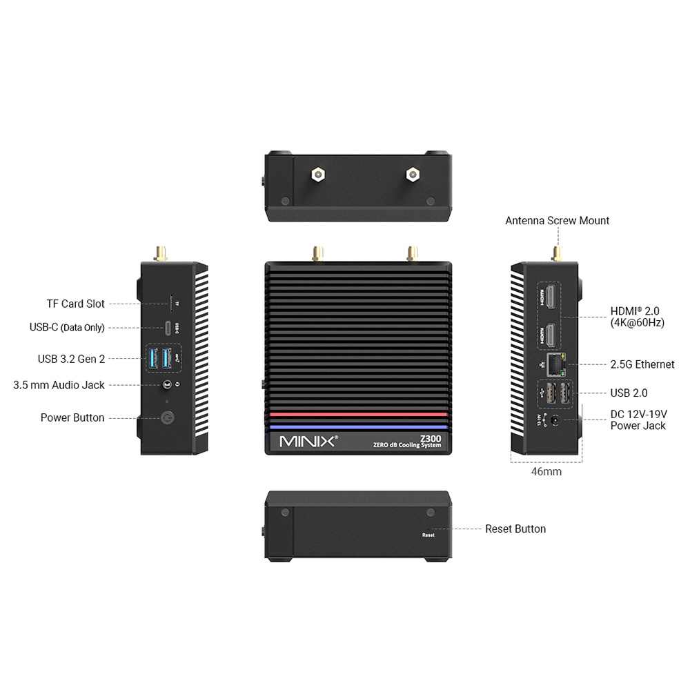 A két HDMI 2.0 port révén a Z300-0dB egyszerre két 4K@60Hz kijelzőt is meghajt. Ez irodai munkánál, multitaskingnál vagy akár digitális kijelzőként használva is hatalmas előny.