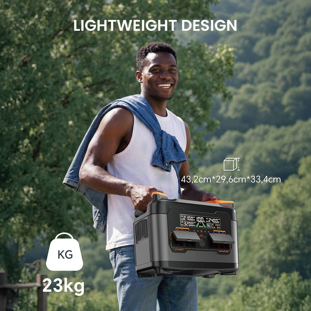 A 23 kilogrammos tömeg rögtön helyre teszi a kategóriát. A NECESPOW S2400 hordozható, persze, csak nem úgy hordozható, mint egy kis szatyor. Ez inkább az a típus, amit átviszel, lepakolsz, használod, és nem az, amit egész nap kézben lóbálsz egyik helyről a másikra. A 43,2 × 29,6 × 33,4 centis méret is ezt erősíti: ez már inkább kompakt erőforrás, mint kényelmi kiegészítő.