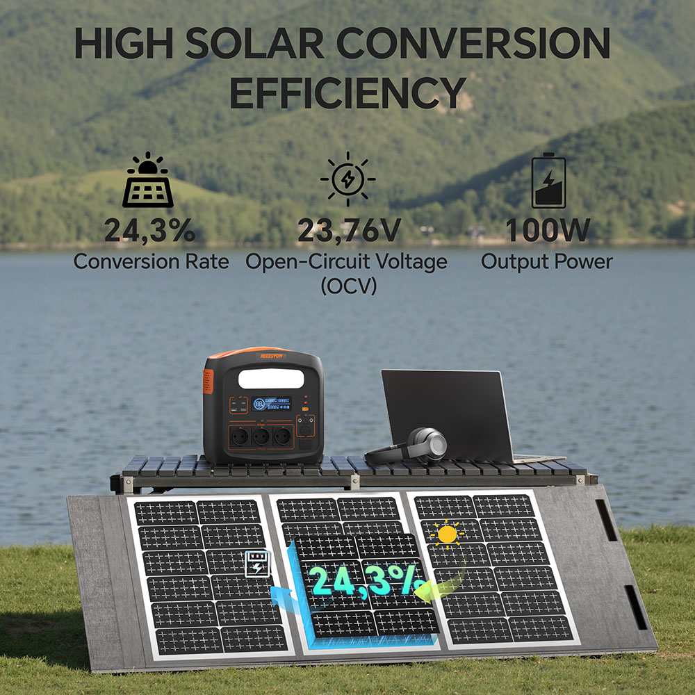 - A csupán 100 wattos maximális teljesítmény egy komolyabb, hűtőt vagy nagyobb teljesítményű világítást használó tábori setup áramellátásához egyértelműen karcsú lesz.