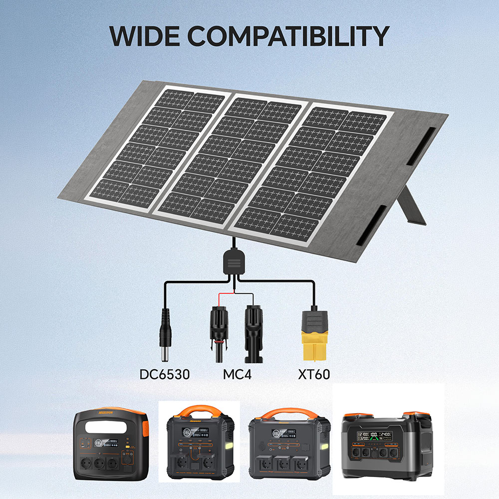 - Zseniálisan kényelmes, univerzális kábelezés az integrált MC4, XT60 és DC csatlakozókkal, amivel a modern akkuállomások azonnal, adapterek nélkül tölthetők.