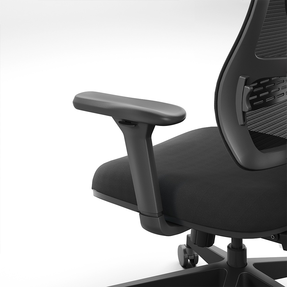 A hálós háttámla és az ülőlap kényelme – nem luxusfotel, hanem hosszú napokra belőtt, józan komfort