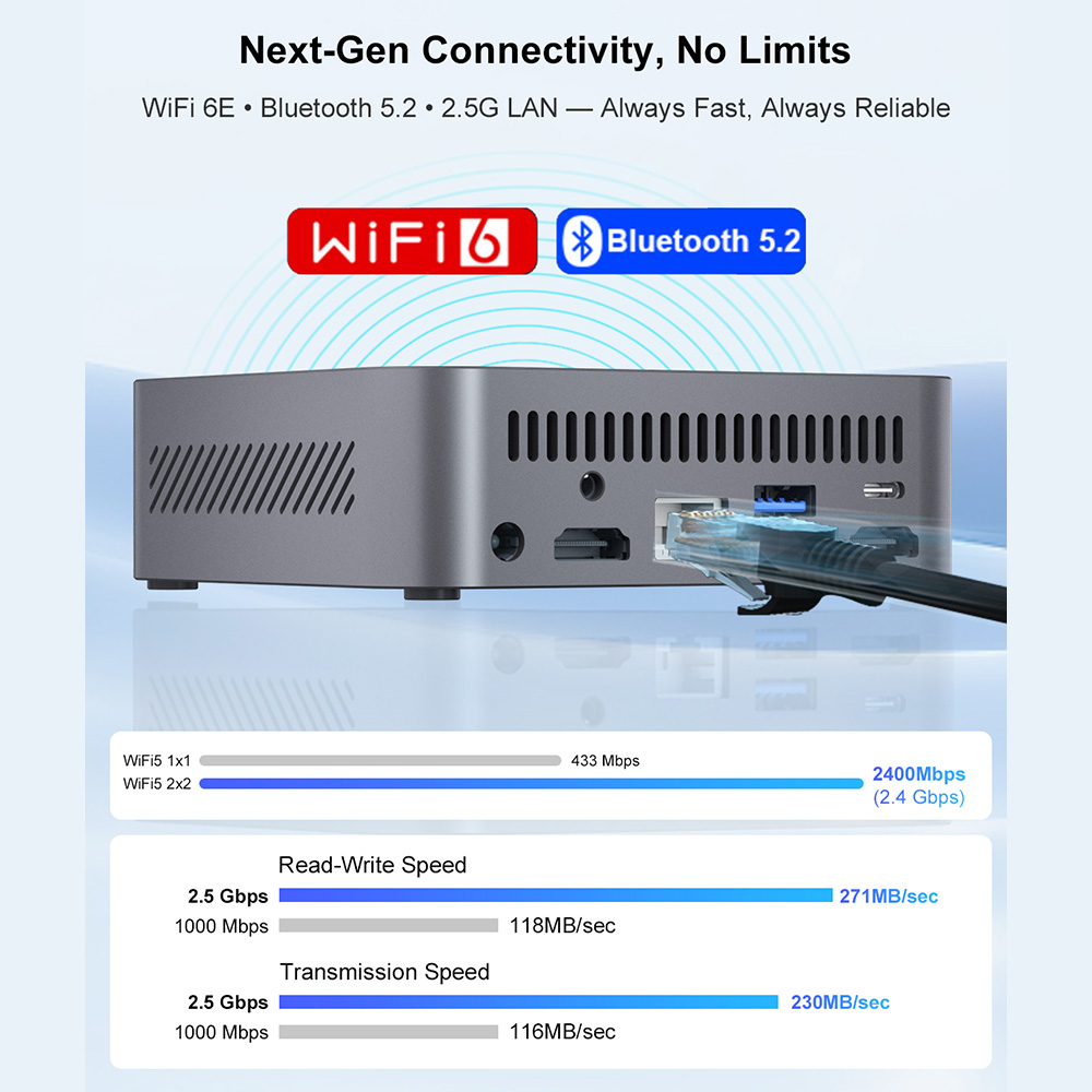 A Ninkear M7 egyik csendes erénye az, hogy nem egy hermetikusan lezárt, „vedd meg így, aztán szeresd, ahogy van” filozófiára épül. A specifikációk alapján bővíthető memóriával és M.2 2280-as SSD-vel dolgozik, a termékoldalak pedig 64 GB-ig terjedő RAM-támogatást emlegetnek. Ez mini PC-nél kifejezetten fontos, mert az ilyen gépekkel kapcsolatban mindig ott motoszkál a kérdés: vajon pár év múlva is vállalhatóak lesznek-e, vagy most veszed meg azt a pontot, amit aztán már nem tudsz továbblökni. A portkiosztás szintén kellemesen földhözragadt. Két USB 3.0, két USB 2.0, két HDMI, egy Type-C, egy gigabites LAN és egy 3,5 mm-es jack. Nem extravagáns, nem túlzó, de az a fajta csomag, aminél nem kell rögtön fejben kiegészítő hubokat és adaptereket rajzolni. Persze itt is akadnak kisebb bosszantó nüanszok. A hazai teszt például kifogásolta, hogy a Type-C körül a kommunikáció nem teljesen egyértelmű, illetve hogy a későbbi szerelhetőség a ház kialakítása miatt nem annyira kényelmes, mint amilyennek elsőre látszik. A Bluetooth tekintetében is van némi következetlenség a nyilvános anyagokban: a webshopos leírások egy része 5.2-t ír, míg más teszt 5.0-t említ. Ez nem világvége, de jól mutatja, hogy a Ninkear M7-ről szóló forrásanyagok nincsenek mindig kristálytisztán összehangolva. A Wi-Fi 6 és a gigabites Ethernet viszont konzekvensen megjelenik minden forrásban, és ez a mindennapi használat szempontjából sokkal fontosabb is. A zajszintje külön dicséretet érdemel: mind a gyártó, mind a független benyomások csendes vagy kifejezetten halk működést emlegetnek, és ez az a pont, ahol én tényleg el tudtam engedni a szkepszist. Egy mini PC akkor jó társ, ha nem akar állandóan jelen lenni a hangjával, és az M7 ebben meglepően ügyes. Nem hangtalan mítosz, nem is csúcsteljesítményű workstation, hanem egy jól viselkedő, vállalható gép, amelyik kevés idegesítő dolgot csinál. Ez sokszor többet ér, mint bármilyen benchmark-diadal. :